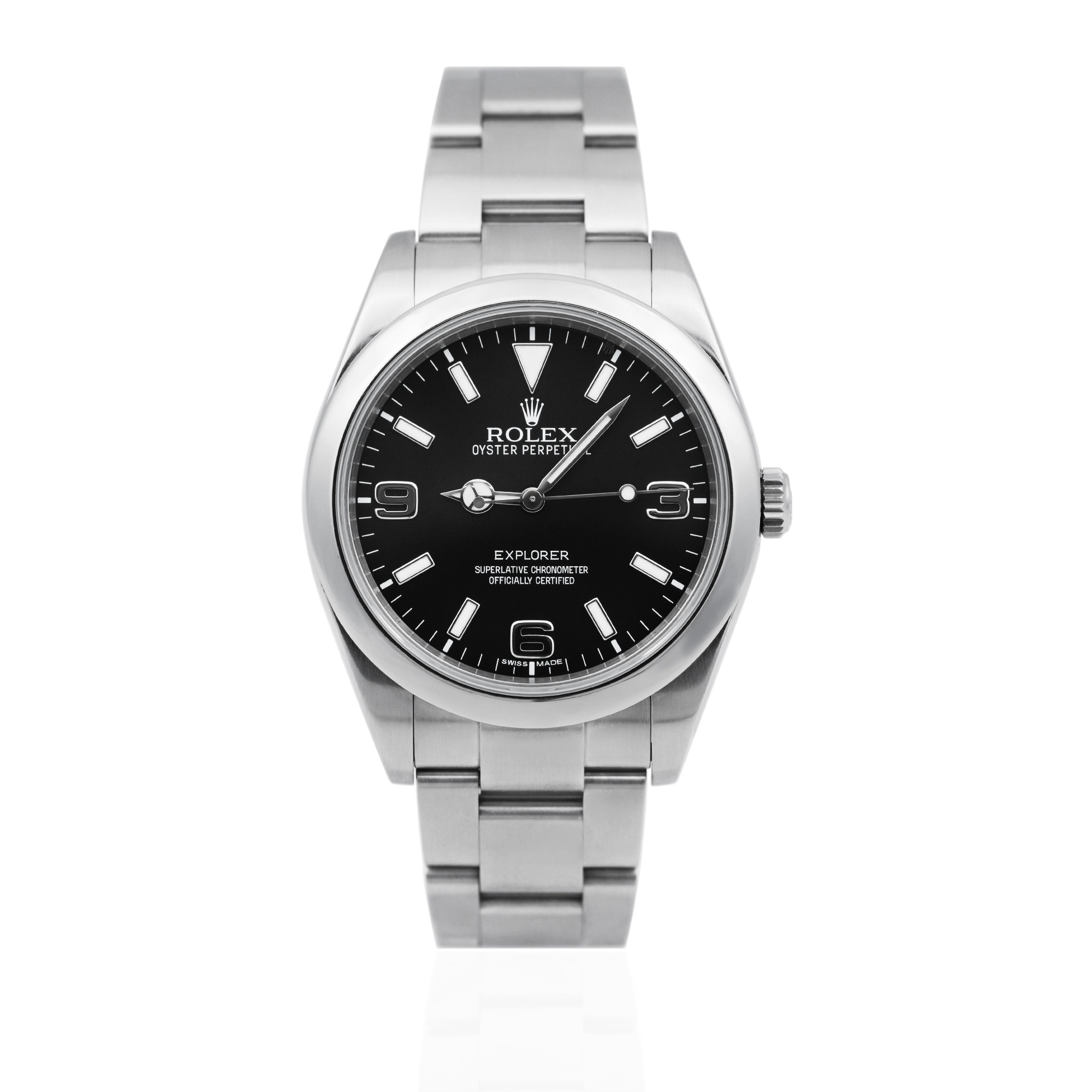 This Rolex Explorer 214270 has a black quarter arabic dial and a bracelet strap. This Rolex has undergone a thorough inspection of water resistance, accuracy, functionality and condition to determine the level of reconditioning required to meet our strict standards. It has also been referenced against technical documents and manufacturer records where available to ensure authenticity and a clean history. All our watches have a 24-month warranty for your peace of mind. One of our skilled polishing technicians has removed marks on the case and bracelet of this watch, brought about by daily wear and tear, which is why this watch does not come with the remaining manufacturer’s warranty.