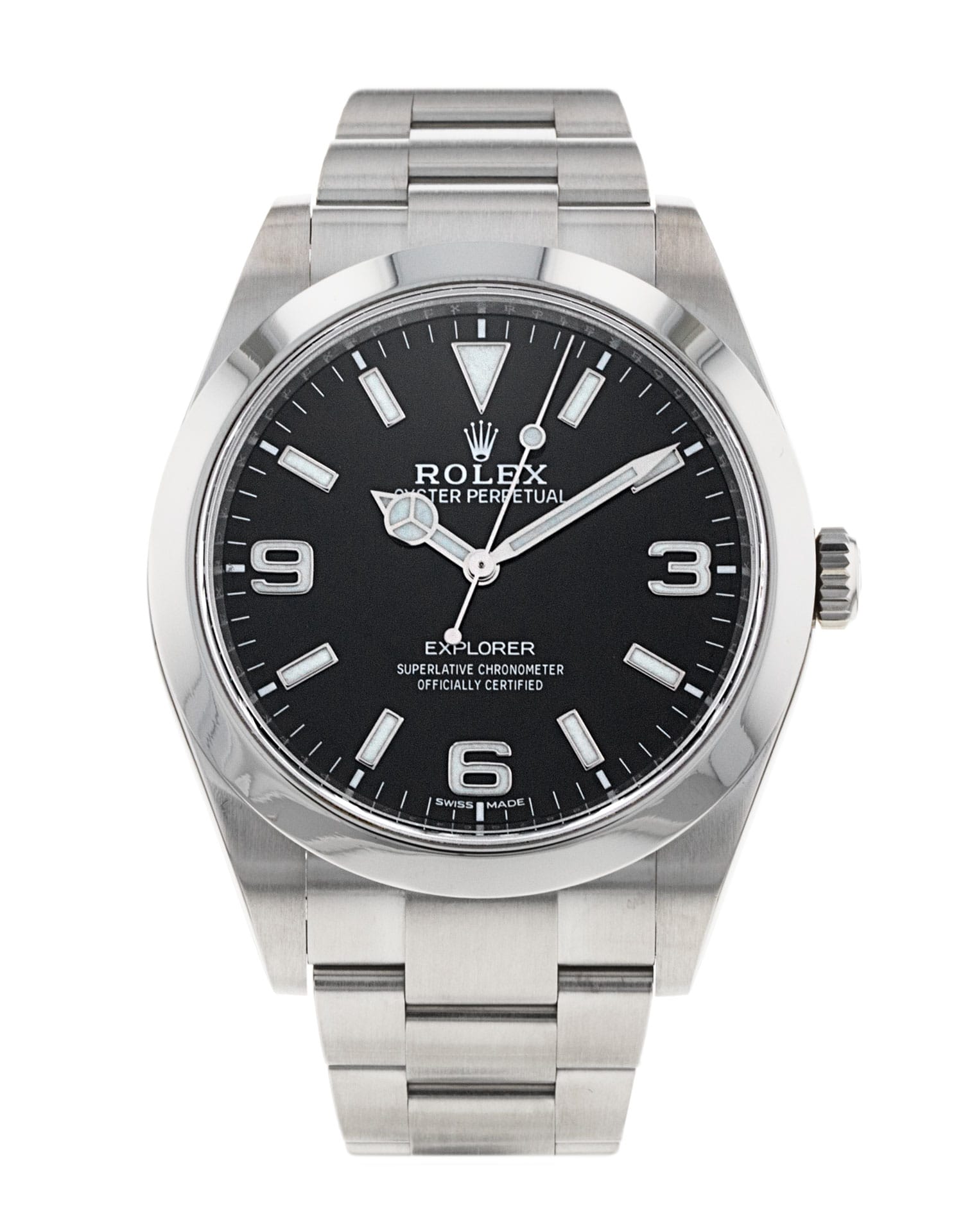 This Rolex Explorer 214270 has a black quarter arabic dial and a bracelet strap. This Rolex has undergone a thorough inspection of water resistance, accuracy, functionality and condition to determine the level of reconditioning required to meet our strict standards. It has also been referenced against technical documents and manufacturer records where available to ensure authenticity and a clean history. All our watches have a 24-month warranty for your peace of mind. One of our skilled polishing technicians has removed marks on the case and bracelet of this watch, brought about by daily wear and tear, which is why this watch does not come with the remaining manufacturer’s warranty.