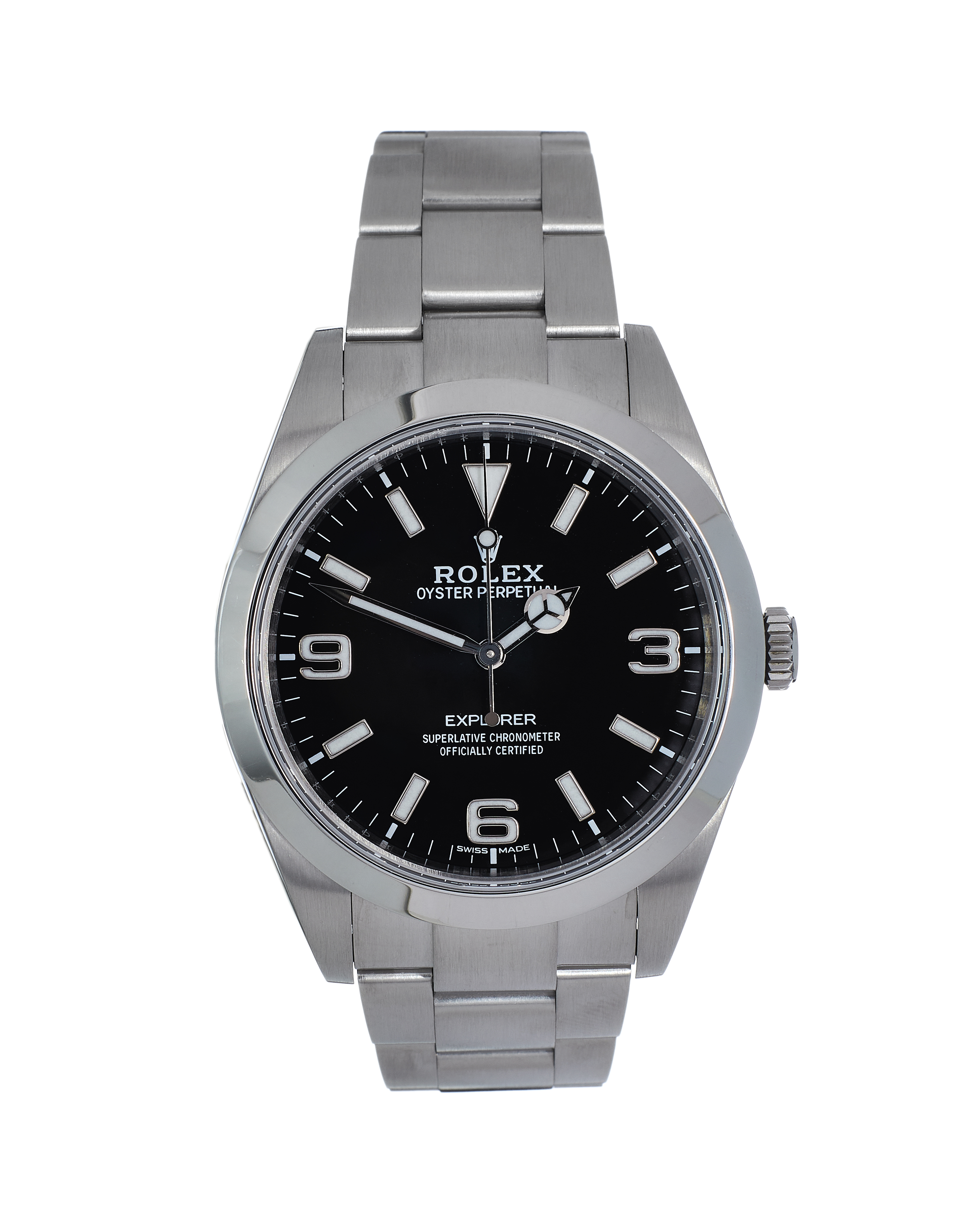 This Rolex Explorer 214270 has a black quarter arabic dial and a bracelet strap. This Rolex has undergone a thorough inspection of water resistance, accuracy, functionality and condition to determine the level of reconditioning required to meet our strict standards. It has also been referenced against technical documents and manufacturer records where available to ensure authenticity and a clean history. All our watches have a 24-month warranty for your peace of mind. One of our skilled polishing technicians has removed marks on the case and bracelet of this watch, brought about by daily wear and tear, which is why this watch does not come with the remaining manufacturer’s warranty.