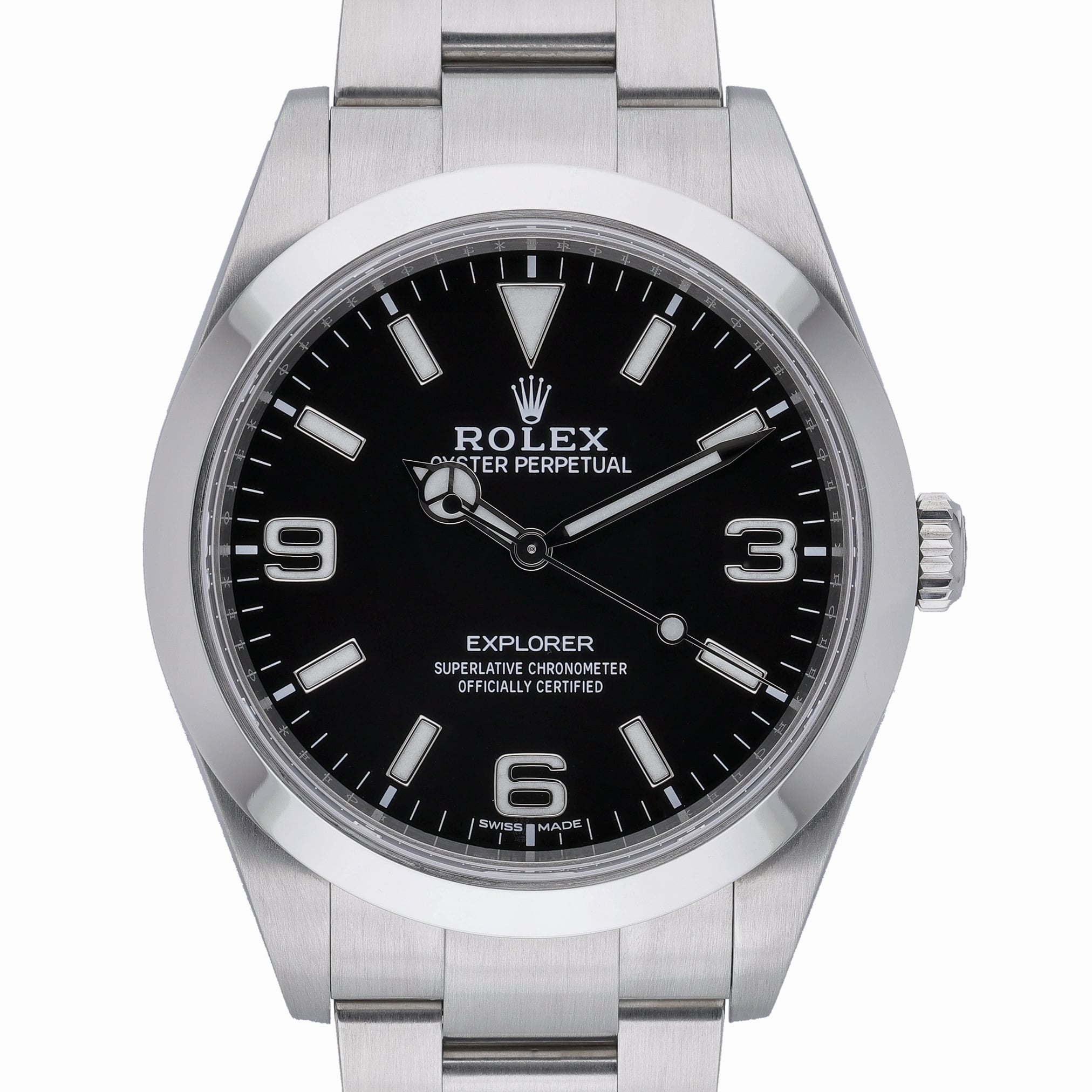 This Rolex Explorer 214270 has a black quarter arabic dial and a bracelet strap. This Rolex has undergone a thorough inspection of water resistance, accuracy, functionality and condition to determine the level of reconditioning required to meet our strict standards. It has also been referenced against technical documents and manufacturer records where available to ensure authenticity and a clean history. All our watches have a 24-month warranty for your peace of mind. One of our skilled polishing technicians has removed marks on the case and bracelet of this watch, brought about by daily wear and tear, which is why this watch does not come with the remaining manufacturer’s warranty.