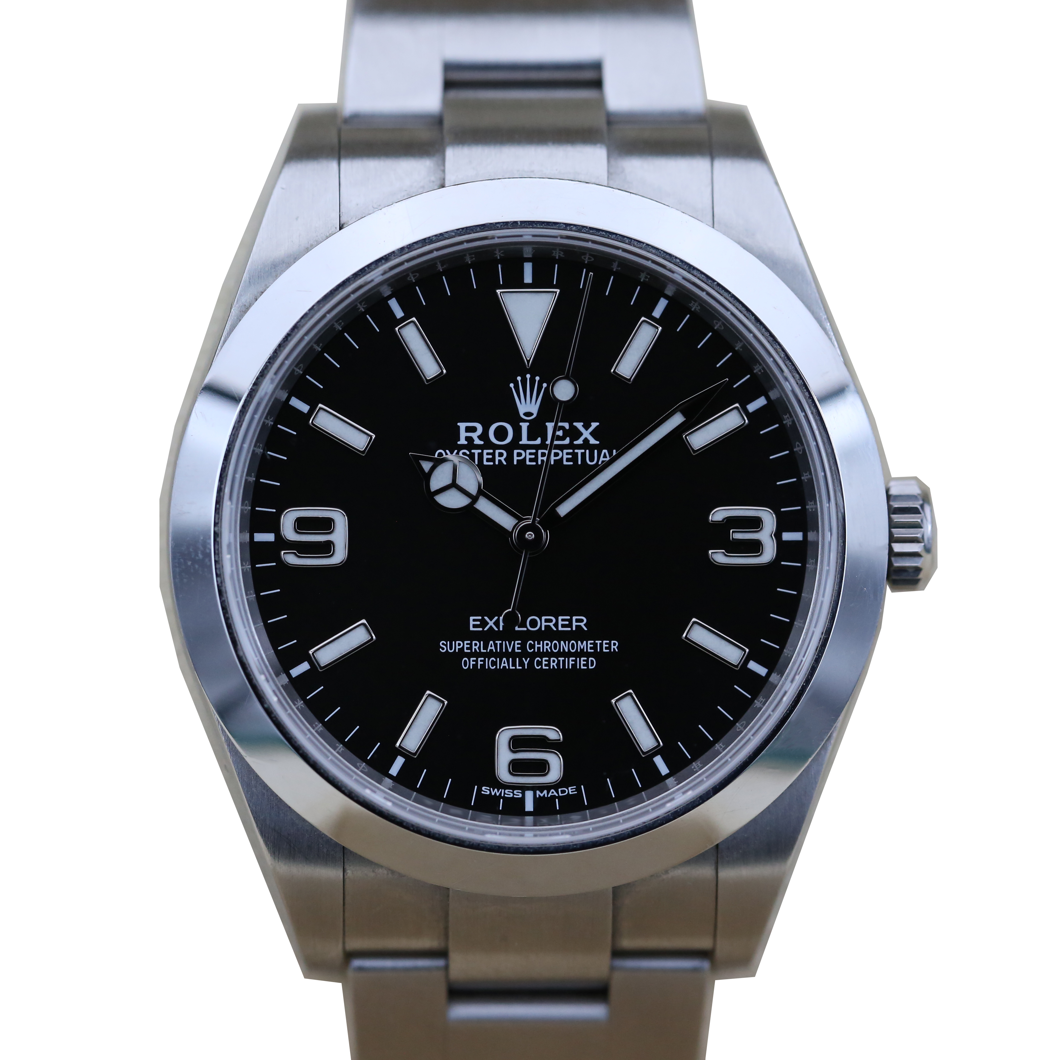 This Rolex Explorer 214270 has a black quarter arabic dial and a bracelet strap. This Rolex has undergone a thorough inspection of water resistance, accuracy, functionality and condition to determine the level of reconditioning required to meet our strict standards. It has also been referenced against technical documents and manufacturer records where available to ensure authenticity and a clean history. All our watches have a 24-month warranty for your peace of mind. One of our skilled polishing technicians has removed marks on the case and bracelet of this watch, brought about by daily wear and tear, which is why this watch does not come with the remaining manufacturer’s warranty.
