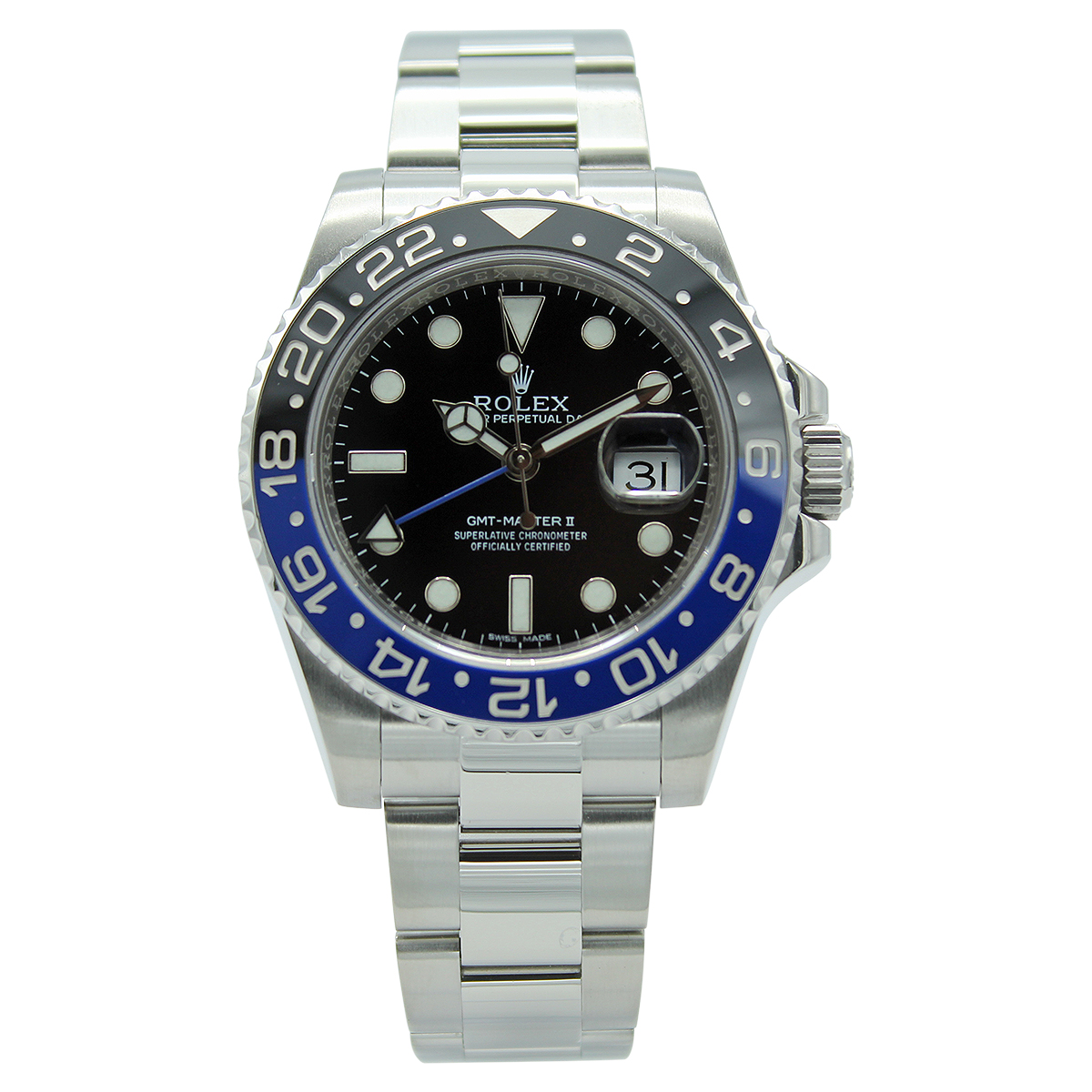 This Rolex GMT Master II 116710 BLNR has a black dial and a bracelet strap. This Rolex has undergone a thorough inspection of water resistance, accuracy, functionality and condition to determine the level of reconditioning required to meet our strict standards. It has also been referenced against technical documents and manufacturer records where available to ensure authenticity and a clean history. All our watches have a 24-month warranty for your peace of mind. One of our skilled polishing technicians has removed marks on the case and bracelet of this watch, brought about by daily wear and tear, which is why this watch does not come with the remaining manufacturer’s warranty.