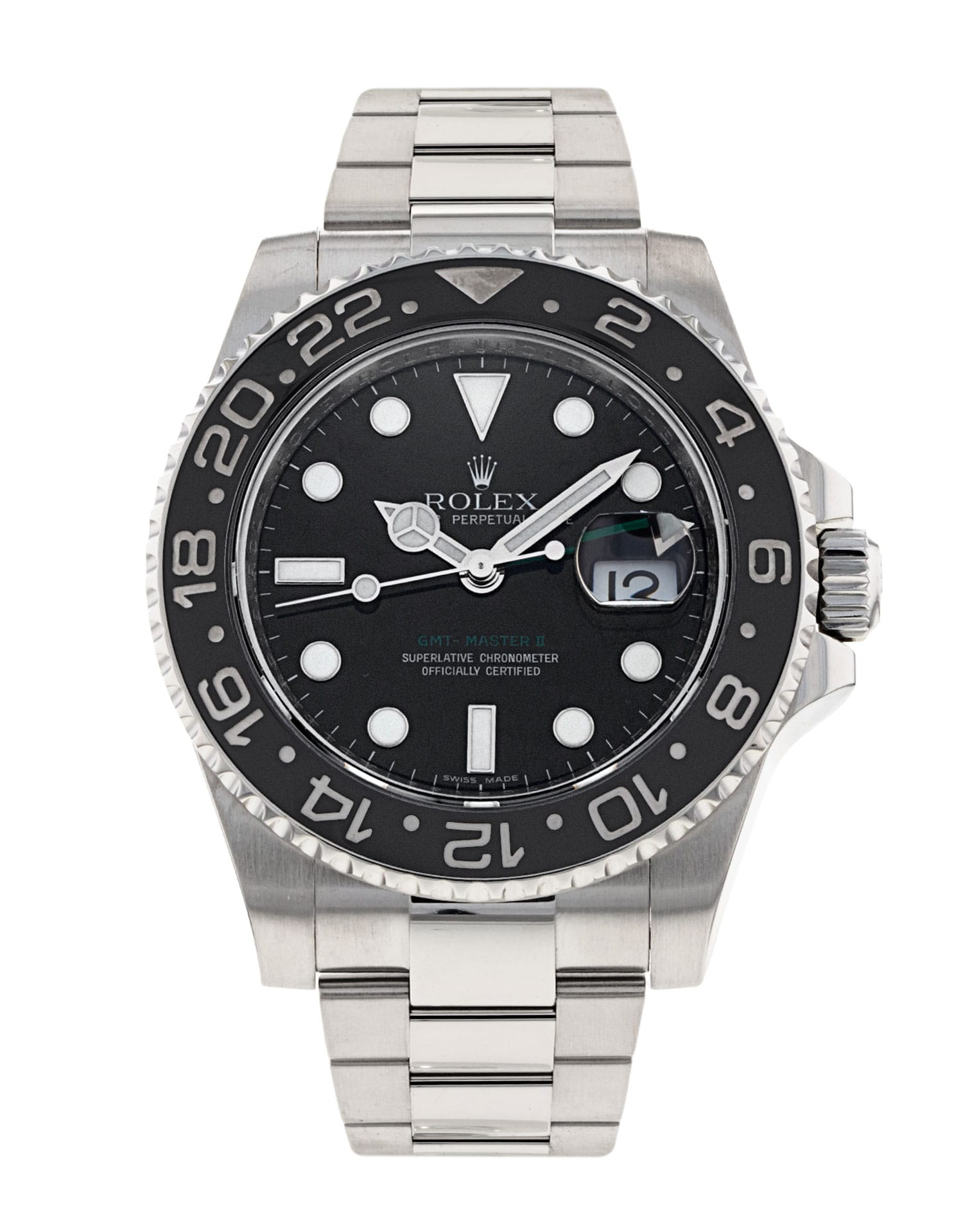 This Rolex GMT Master II 116710 LN has a black dial and a bracelet strap. This Rolex has undergone a thorough inspection of water resistance, accuracy, functionality and condition to determine the level of reconditioning required to meet our strict standards. It has also been referenced against technical documents and manufacturer records where available to ensure authenticity and a clean history. All our watches have a 24-month warranty for your peace of mind. One of our skilled polishing technicians has removed marks on the case and bracelet of this watch, brought about by daily wear and tear, which is why this watch does not come with the remaining manufacturer’s warranty.