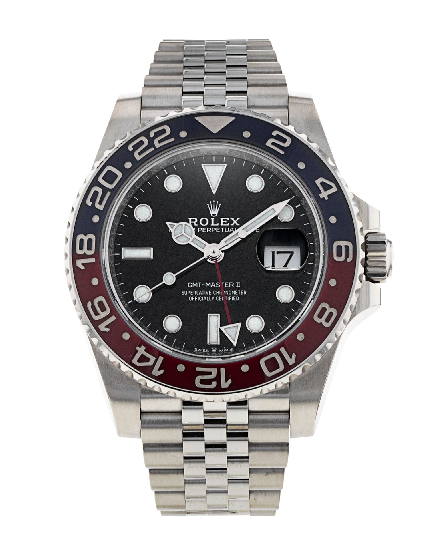 This Rolex GMT Master II 126710 BLRO has a black dial and a bracelet strap. This Rolex has undergone a thorough inspection of water resistance, accuracy, functionality and condition to determine the level of reconditioning required to meet our strict standards. It has also been referenced against technical documents and manufacturer records where available to ensure authenticity and a clean history. Our watches have a 24-month warranty for your peace of mind, in conjunction with any remaining manufacturer’s warranty from new or from service. To maintain the manufacturer’s warranty on this watch, it has not been polished in our service centre.