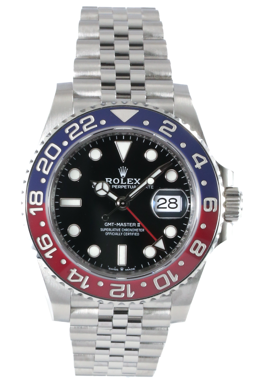 This Rolex GMT Master II 126710 BLRO has a black dial and a bracelet strap. This Rolex has undergone a thorough inspection of water resistance, accuracy, functionality and condition to determine the level of reconditioning required to meet our strict standards. It has also been referenced against technical documents and manufacturer records where available to ensure authenticity and a clean history. All our watches have a 24-month warranty for your peace of mind. One of our skilled polishing technicians has removed marks on the case and bracelet of this watch, brought about by daily wear and tear, which is why this watch does not come with the remaining manufacturer’s warranty.