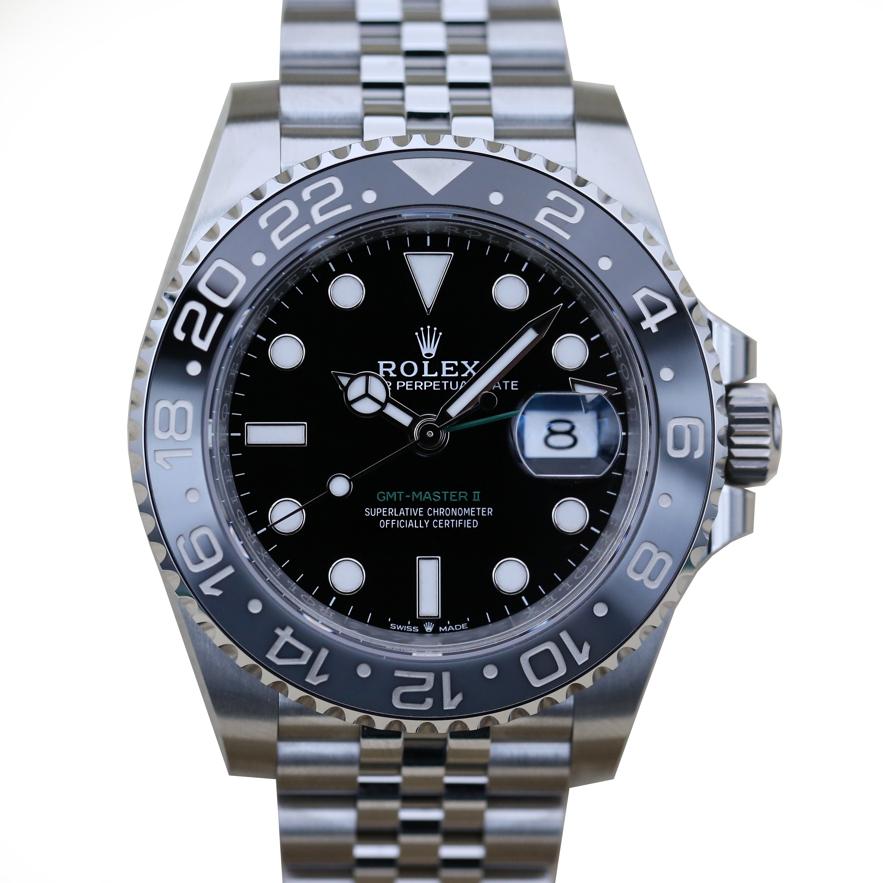 This Rolex GMT Master II 126710 GRNR has a black dial and a bracelet strap. This Rolex has undergone a thorough inspection of water resistance, accuracy, functionality and condition to determine the level of reconditioning required to meet our strict standards. It has also been referenced against technical documents and manufacturer records where available to ensure authenticity and a clean history. Our watches have a 24-month warranty for your peace of mind, in conjunction with any remaining manufacturer’s warranty from new or from service. To maintain the manufacturer’s warranty on this watch, it has not been polished in our service centre.