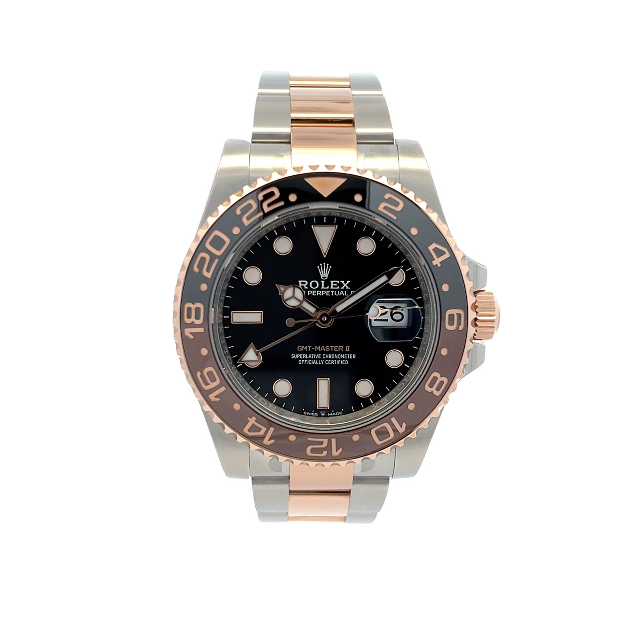 This Rolex GMT Master II 126711 CHNR has a black dial and a bracelet strap. This Rolex has undergone a thorough inspection of water resistance, accuracy, functionality and condition to determine the level of reconditioning required to meet our strict standards. It has also been referenced against technical documents and manufacturer records where available to ensure authenticity and a clean history. Our watches have a 24-month warranty for your peace of mind, in conjunction with any remaining manufacturer’s warranty from new or from service. To maintain the manufacturer’s warranty on this watch, it has not been polished in our service centre.