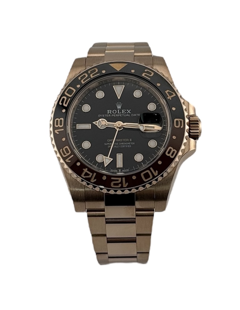 This Rolex GMT Master II 126715 CHNR has a black dial and a bracelet strap. This Rolex has undergone a thorough inspection of water resistance, accuracy, functionality and condition to determine the level of reconditioning required to meet our strict standards. It has also been referenced against technical documents and manufacturer records where available to ensure authenticity and a clean history. All our watches have a 24-month warranty for your peace of mind. One of our skilled polishing technicians has removed marks on the case and bracelet of this watch, brought about by daily wear and tear, which is why this watch does not come with the remaining manufacturer’s warranty.