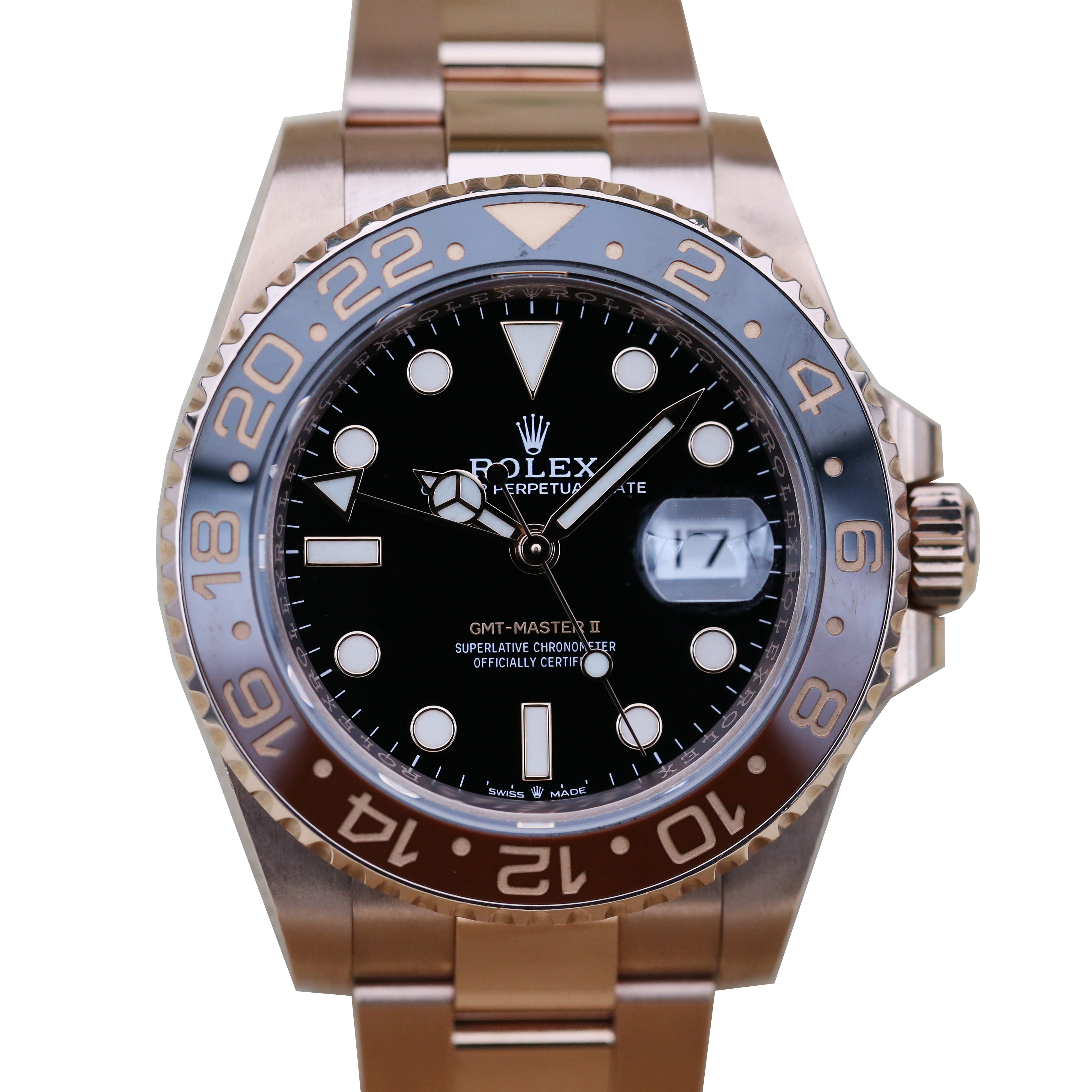 This Rolex GMT Master II 126715 CHNR has a black dial and a bracelet strap. This Rolex has undergone a thorough inspection of water resistance, accuracy, functionality and condition to determine the level of reconditioning required to meet our strict standards. It has also been referenced against technical documents and manufacturer records where available to ensure authenticity and a clean history. Our watches have a 24-month warranty for your peace of mind, in conjunction with any remaining manufacturer’s warranty from new or from service. To maintain the manufacturer’s warranty on this watch, it has not been polished in our service centre.