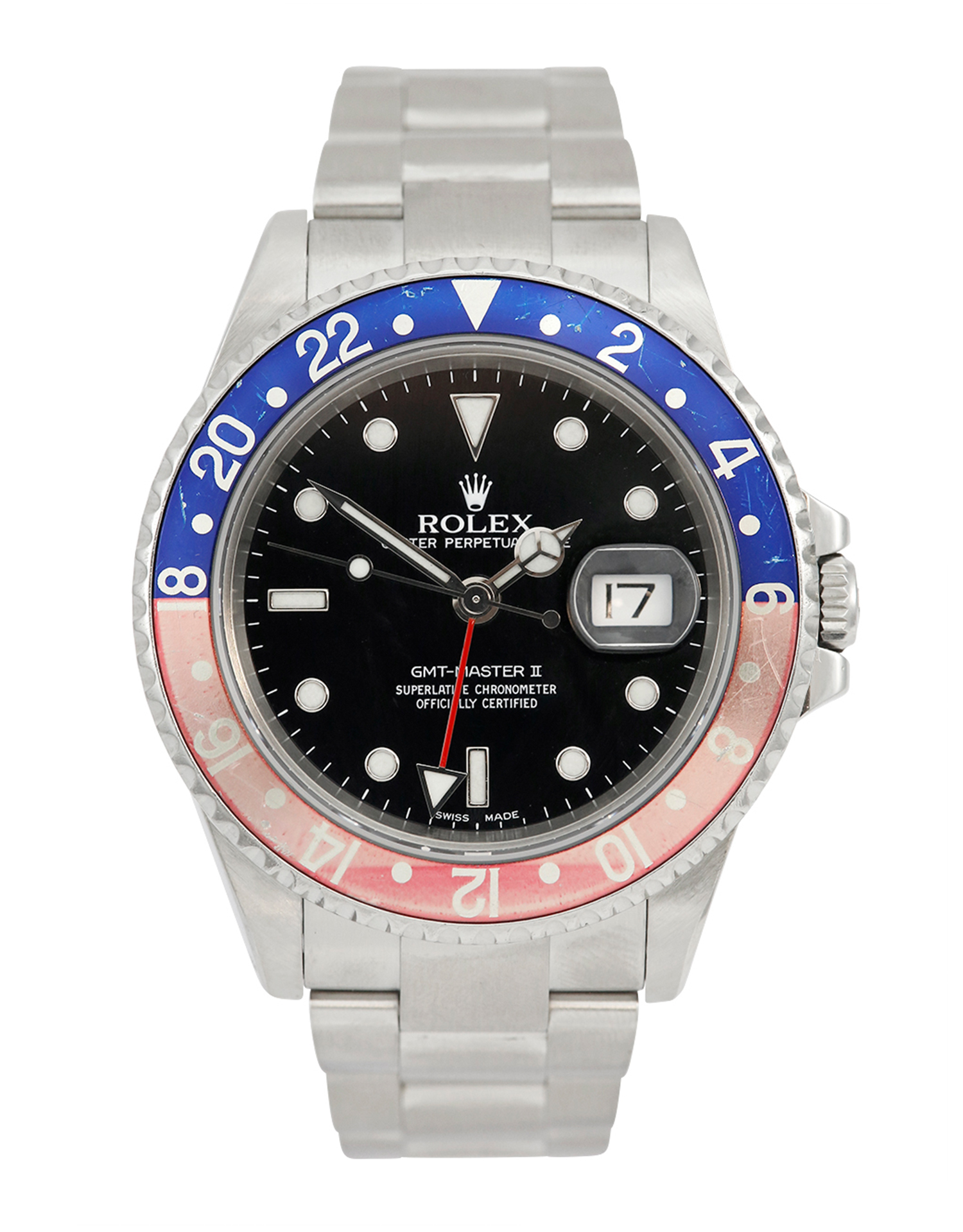 The GMT Master was first commissioned in the 1950s by pioneering airline Pan Am, and was designed for aviation. An increase in flight distances created demand for a watch that was able to tell the time in two different parts of the world simultaneously, so Rolex built it with an additional hand that could be set to a second time zone. By the 1980s, the watch had developed into the GMT Master II and was already a favourite among collectors.