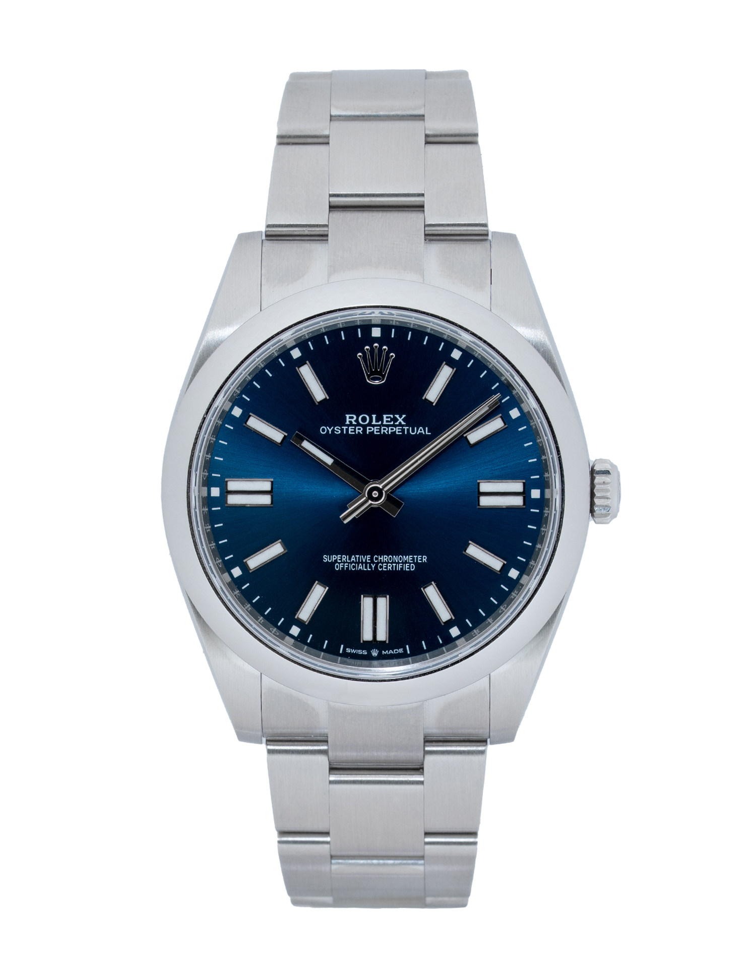 This Rolex Oyster Perpetual 124300 has a blue baton dial and a bracelet strap. This Rolex has undergone a thorough inspection of water resistance, accuracy, functionality and condition to determine the level of reconditioning required to meet our strict standards. It has also been referenced against technical documents and manufacturer records where available to ensure authenticity and a clean history. Our watches have a 24-month warranty for your peace of mind, in conjunction with any remaining manufacturer’s warranty from new or from service. To maintain the manufacturer’s warranty on this watch, it has not been polished in our service centre.