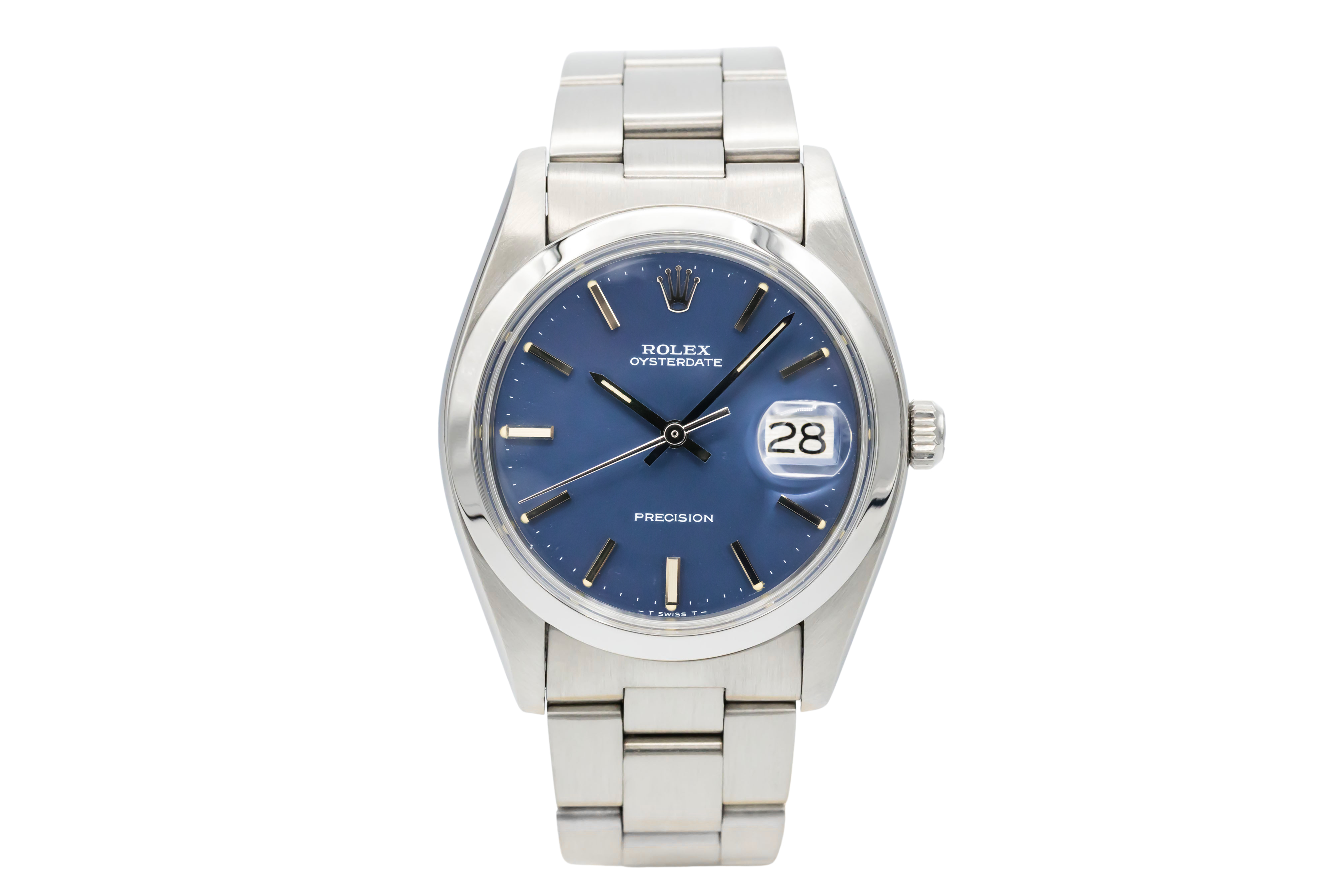 This Rolex Oyster Precision 6694 has a blue baton dial and a bracelet strap. This Rolex has undergone a thorough inspection of water resistance, accuracy, functionality and condition to determine the level of reconditioning required to meet our strict standards. It has also been referenced against technical documents and manufacturer records where available to ensure authenticity and a clean history. All our watches have a 24-month warranty for your peace of mind. One of our skilled polishing technicians has removed marks on the case and bracelet of this watch, brought about by daily wear and tear, which is why this watch does not come with the remaining manufacturer’s warranty.