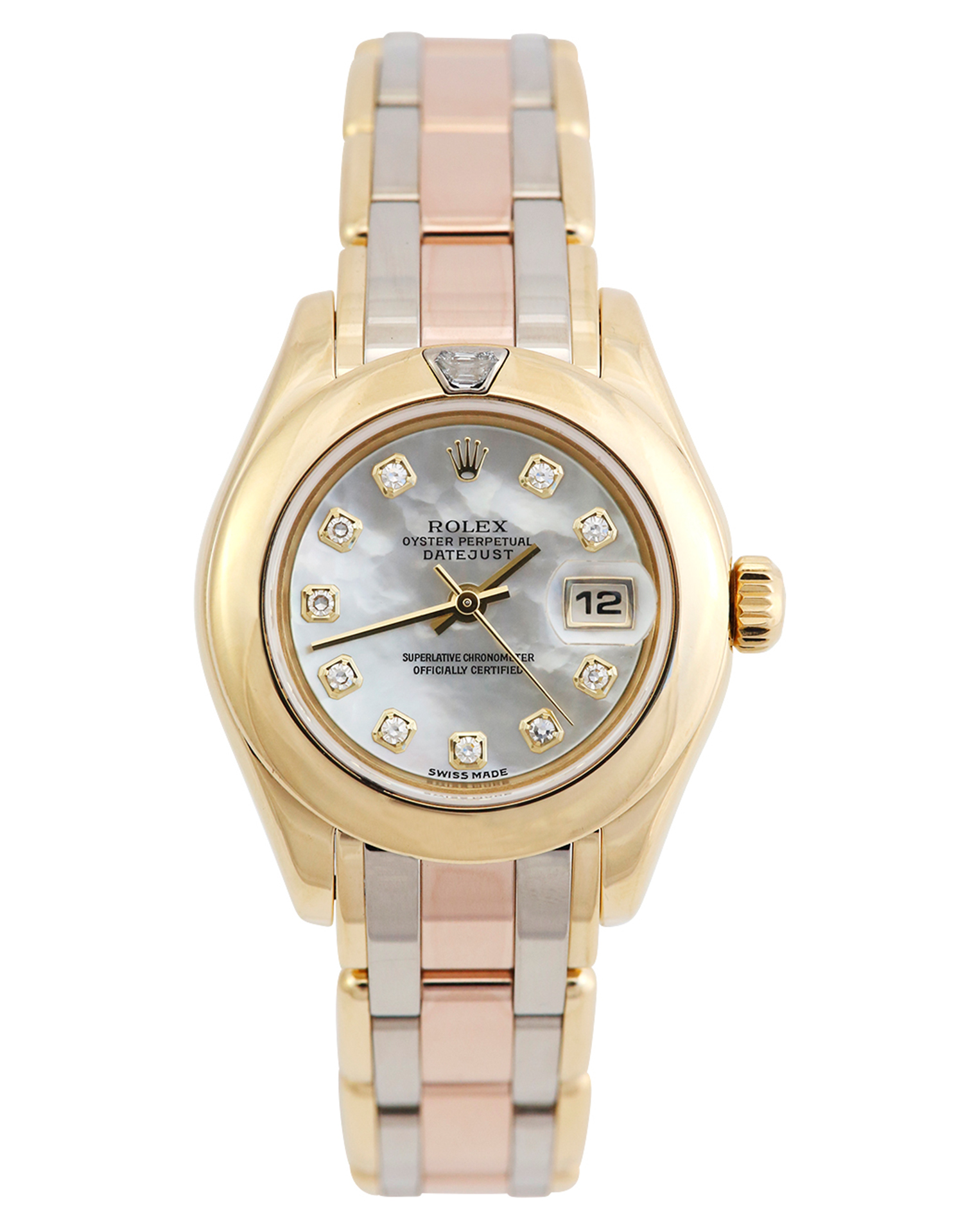 This Rolex Pearlmaster 80328 has a mother of pearl white roman numeral dial and a bracelet strap. This Rolex has undergone a thorough inspection of water resistance, accuracy, functionality and condition to determine the level of reconditioning required to meet our strict standards. It has also been referenced against technical documents and manufacturer records where available to ensure authenticity and a clean history. All our watches have a 24-month warranty for your peace of mind. One of our skilled polishing technicians has removed marks on the case and bracelet of this watch, brought about by daily wear and tear, which is why this watch does not come with the remaining manufacturer’s warranty.