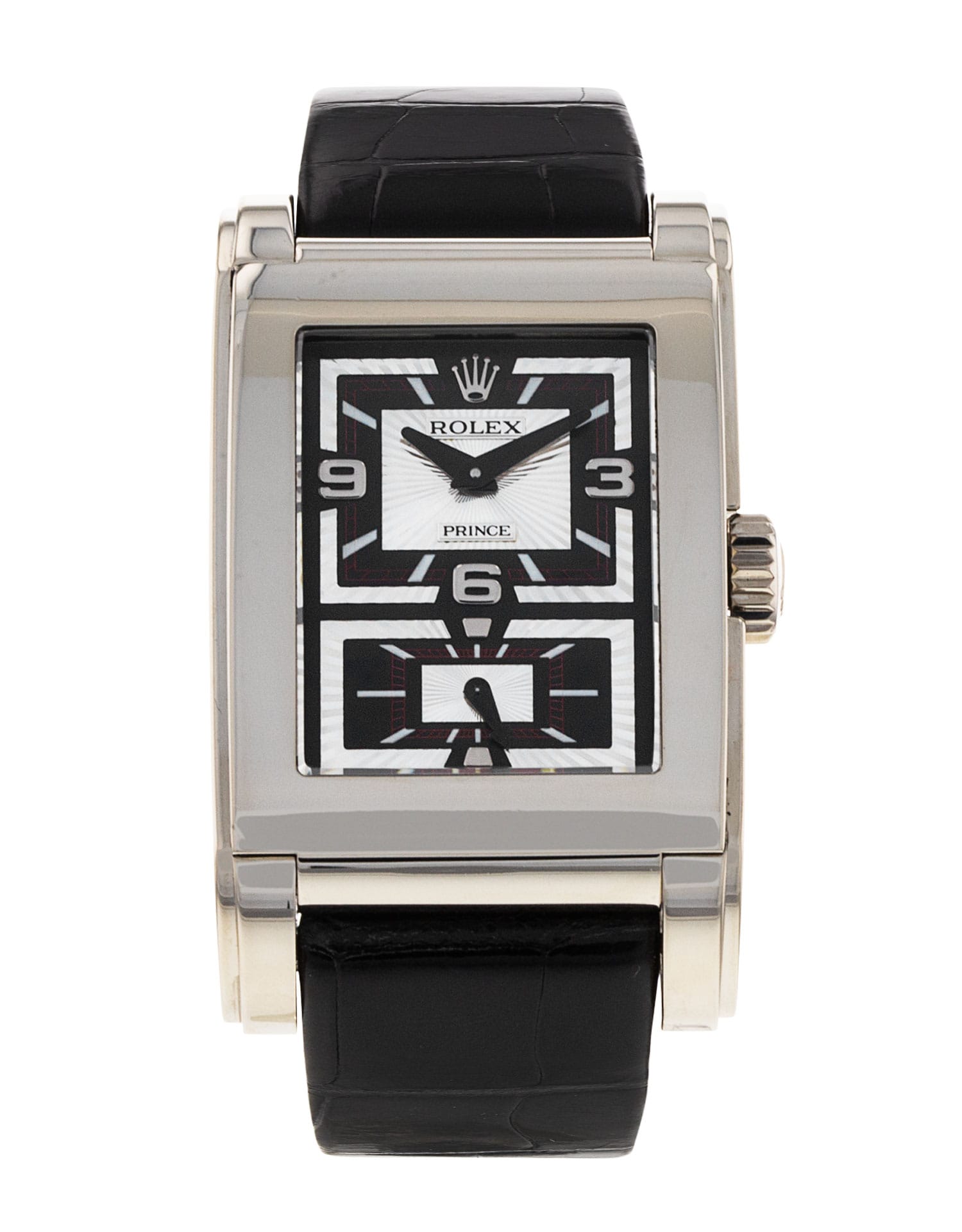 This Rolex Prince 5443/9 has a black baton dial and a leather strap. This Rolex has undergone a thorough inspection of accuracy, functionality and condition to determine the level of reconditioning required to meet our strict standards. It has also been referenced against technical documents and manufacturer records where available to ensure authenticity and a clean history. All our watches have a 24-month warranty for your peace of mind. One of our skilled polishing technicians has removed marks on the case and bracelet of this watch, brought about by daily wear and tear, which is why this watch does not come with the remaining manufacturer’s warranty.