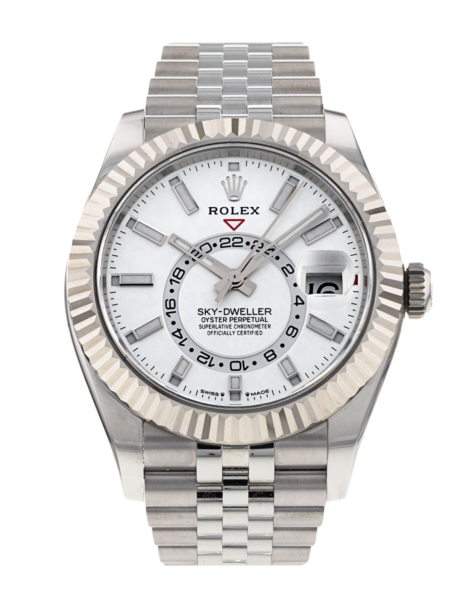 This Rolex Sky-Dweller 336934 has a white dial and a bracelet strap. This Rolex has undergone a thorough inspection of water resistance, accuracy, functionality and condition to determine the level of reconditioning required to meet our strict standards. It has also been referenced against technical documents and manufacturer records where available to ensure authenticity and a clean history. Our watches have a 24-month warranty for your peace of mind, in conjunction with any remaining manufacturer’s warranty from new or from service. To maintain the manufacturer’s warranty on this watch, it has not been polished in our service centre.