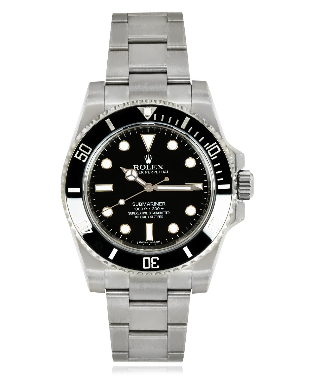 This is a superb example of a 'no-date' Submariner—a model that is prized for its cleaner, pared-down look and symmetrical design that many collectors appreciate. The ref 114060 follows on from and updates the 14060M, which began life with series P in the year 2000—but its predecessor, the plain 14060, was in production as early as 1990. Fans will also point out that the original Submariners, from their introduction in 1953, did not have date windows. While this model continues to use the flawless in-house calibre 3130, it vastly improves the bezel with high-tech ceramic and also upgrades the bracelet.