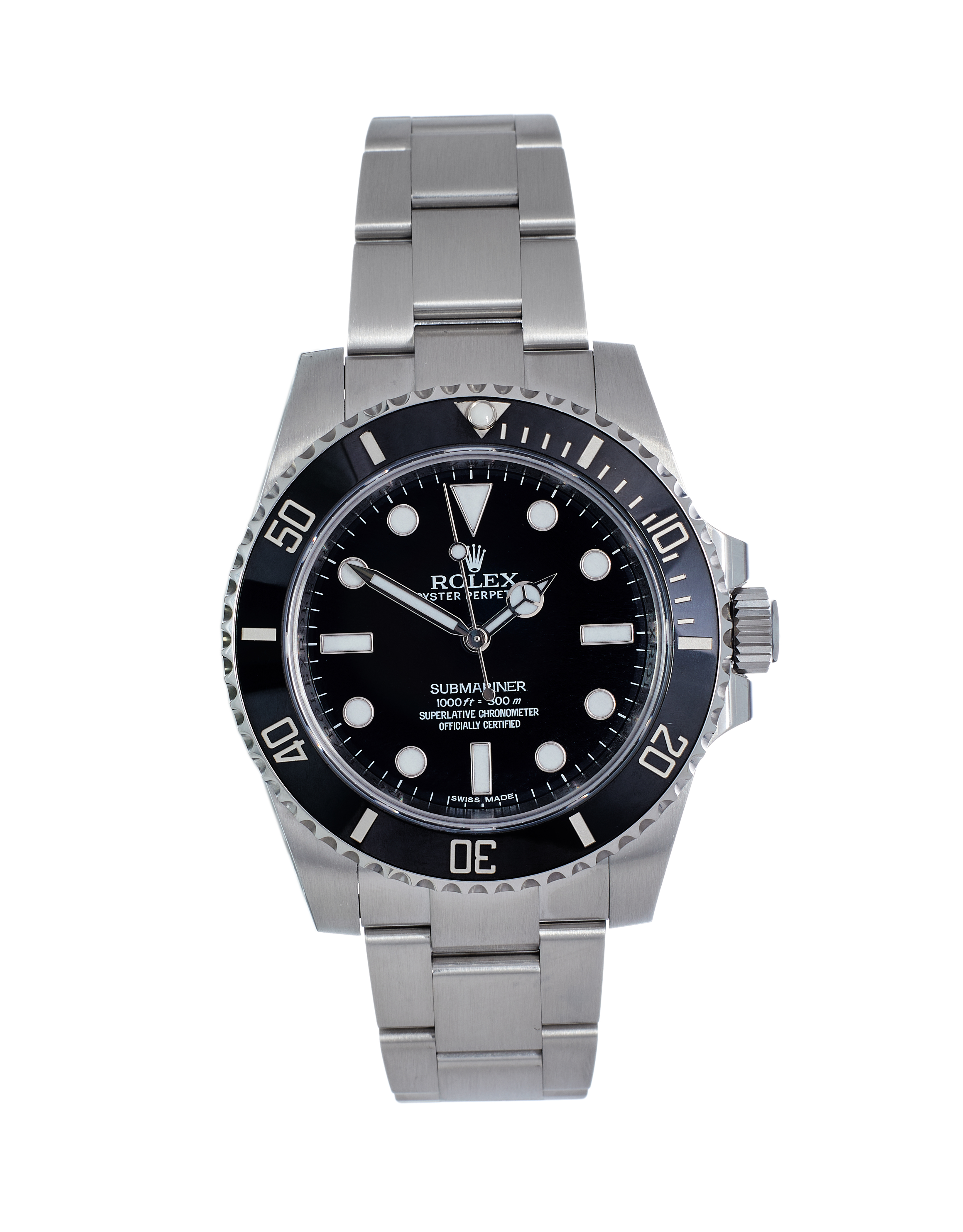 This is a superb example of a 'no-date' Submariner—a model that is prized for its cleaner, pared-down look and symmetrical design that many collectors appreciate. The ref 114060 follows on from and updates the 14060M, which began life with series P in the year 2000—but its predecessor, the plain 14060, was in production as early as 1990. Fans will also point out that the original Submariners, from their introduction in 1953, did not have date windows. While this model continues to use the flawless in-house calibre 3130, it vastly improves the bezel with high-tech ceramic and also upgrades the bracelet.