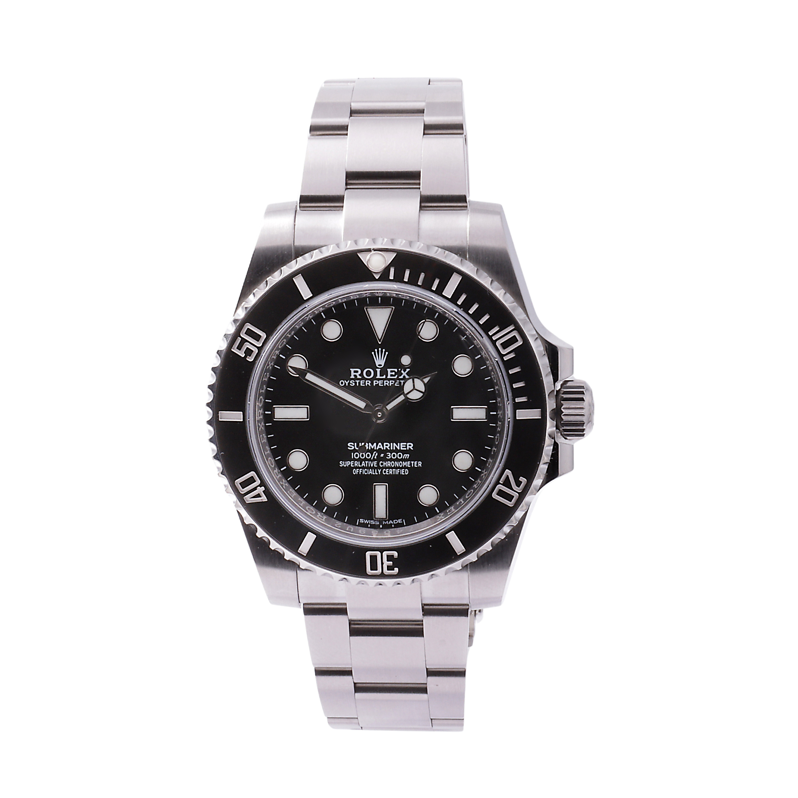 This is a superb example of a 'no-date' Submariner—a model that is prized for its cleaner, pared-down look and symmetrical design that many collectors appreciate. The ref 114060 follows on from and updates the 14060M, which began life with series P in the year 2000—but its predecessor, the plain 14060, was in production as early as 1990. Fans will also point out that the original Submariners, from their introduction in 1953, did not have date windows. While this model continues to use the flawless in-house calibre 3130, it vastly improves the bezel with high-tech ceramic and also upgrades the bracelet.