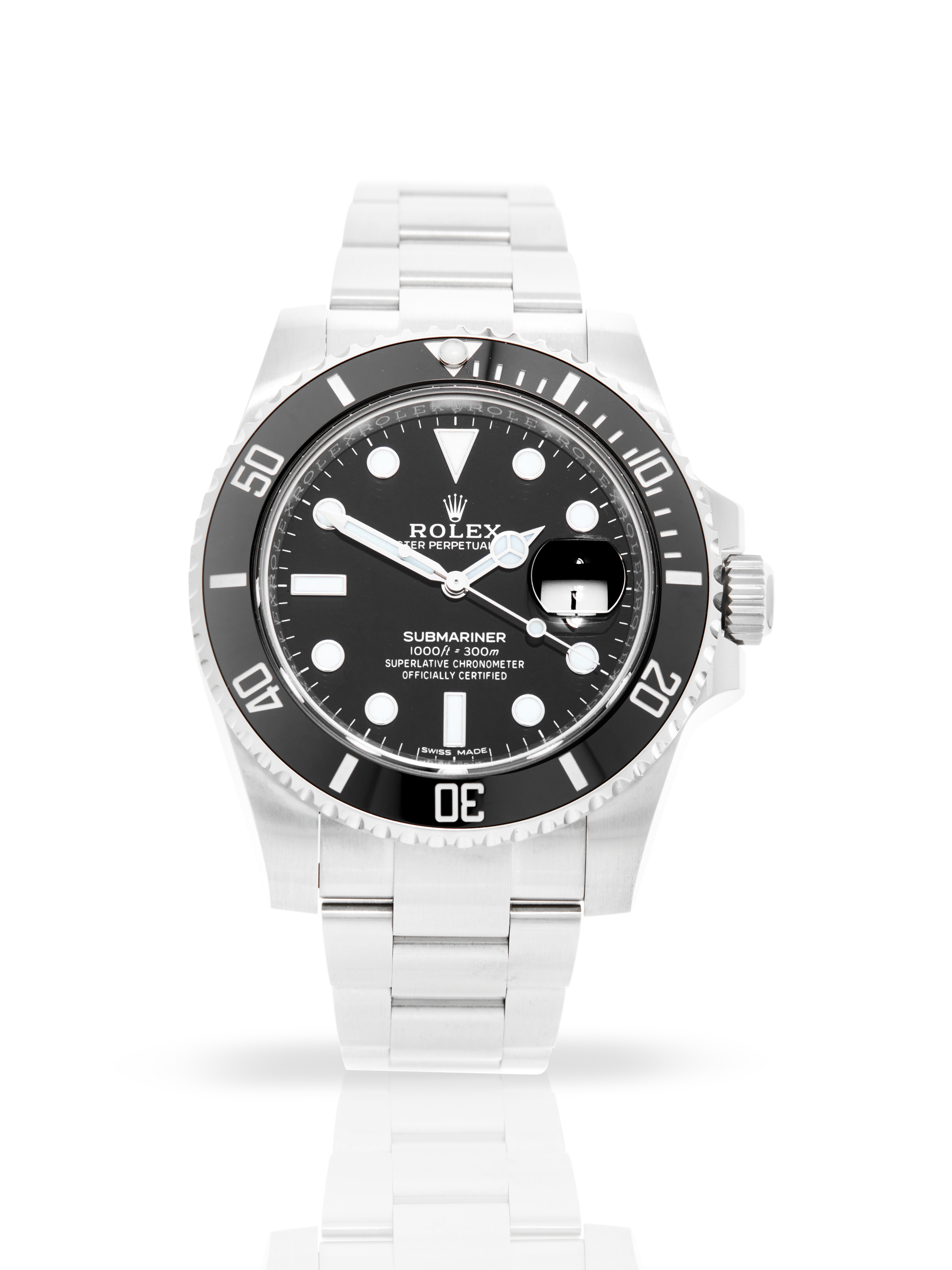 There's no other watch like the Submariner, the peerless tool for divers that has enjoyed an unmatched reputation since its introduction in 1953. The watch is prized for its versatility—sporty and durable enough to be useful for professional diving, possessed of the elegance needed for a black tie event, and with a design so classic it could be worn every day to the office. This stunning version updates the previous reference 16610 with high-tech specs, including the ceramic insert with platinum-coated numerals in the bezel, not to mention the superb calibre 3135 inside.