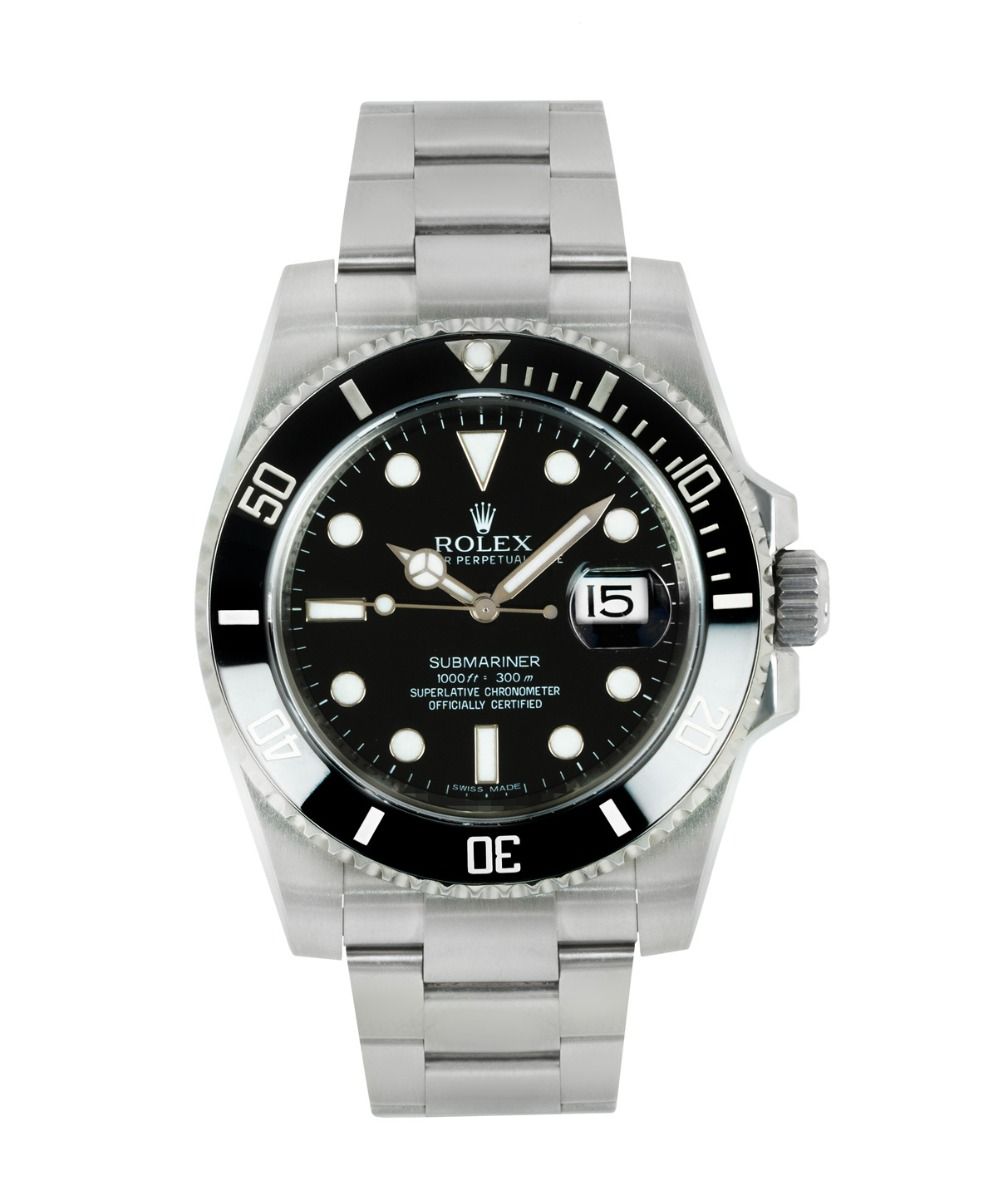 This Rolex Submariner 116610 LN has a black dial and a bracelet strap. This Rolex has undergone a thorough inspection of water resistance, accuracy, functionality and condition to determine the level of reconditioning required to meet our strict standards. It has also been referenced against technical documents and manufacturer records where available to ensure authenticity and a clean history. All our watches have a 24-month warranty for your peace of mind. One of our skilled polishing technicians has removed marks on the case and bracelet of this watch, brought about by daily wear and tear, which is why this watch does not come with the remaining manufacturer’s warranty.