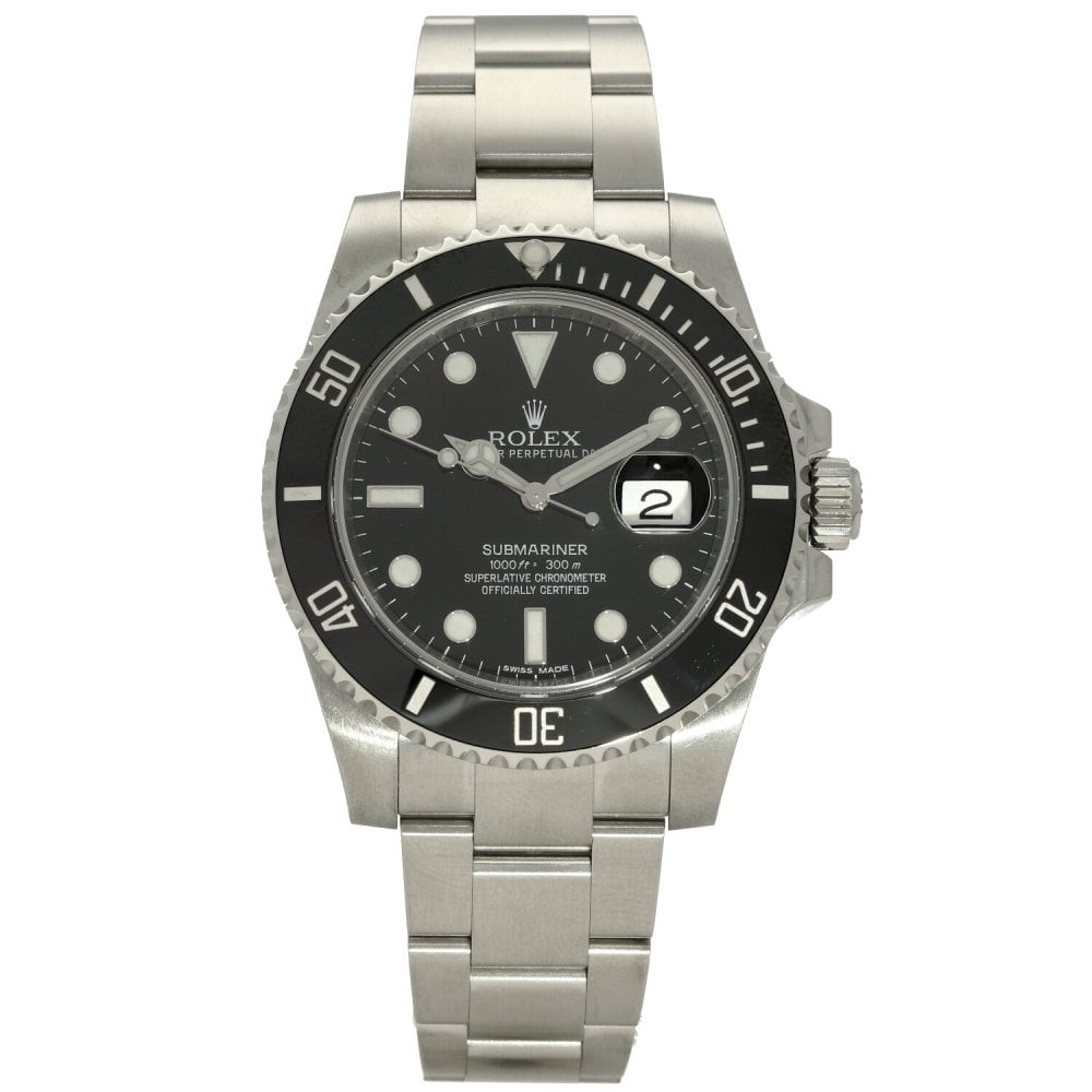 This Rolex Submariner 116610 LN has a black dial and a bracelet strap. This Rolex has undergone a thorough inspection of water resistance, accuracy, functionality and condition to determine the level of reconditioning required to meet our strict standards. It has also been referenced against technical documents and manufacturer records where available to ensure authenticity and a clean history. All our watches have a 24-month warranty for your peace of mind. One of our skilled polishing technicians has removed marks on the case and bracelet of this watch, brought about by daily wear and tear, which is why this watch does not come with the remaining manufacturer’s warranty.
