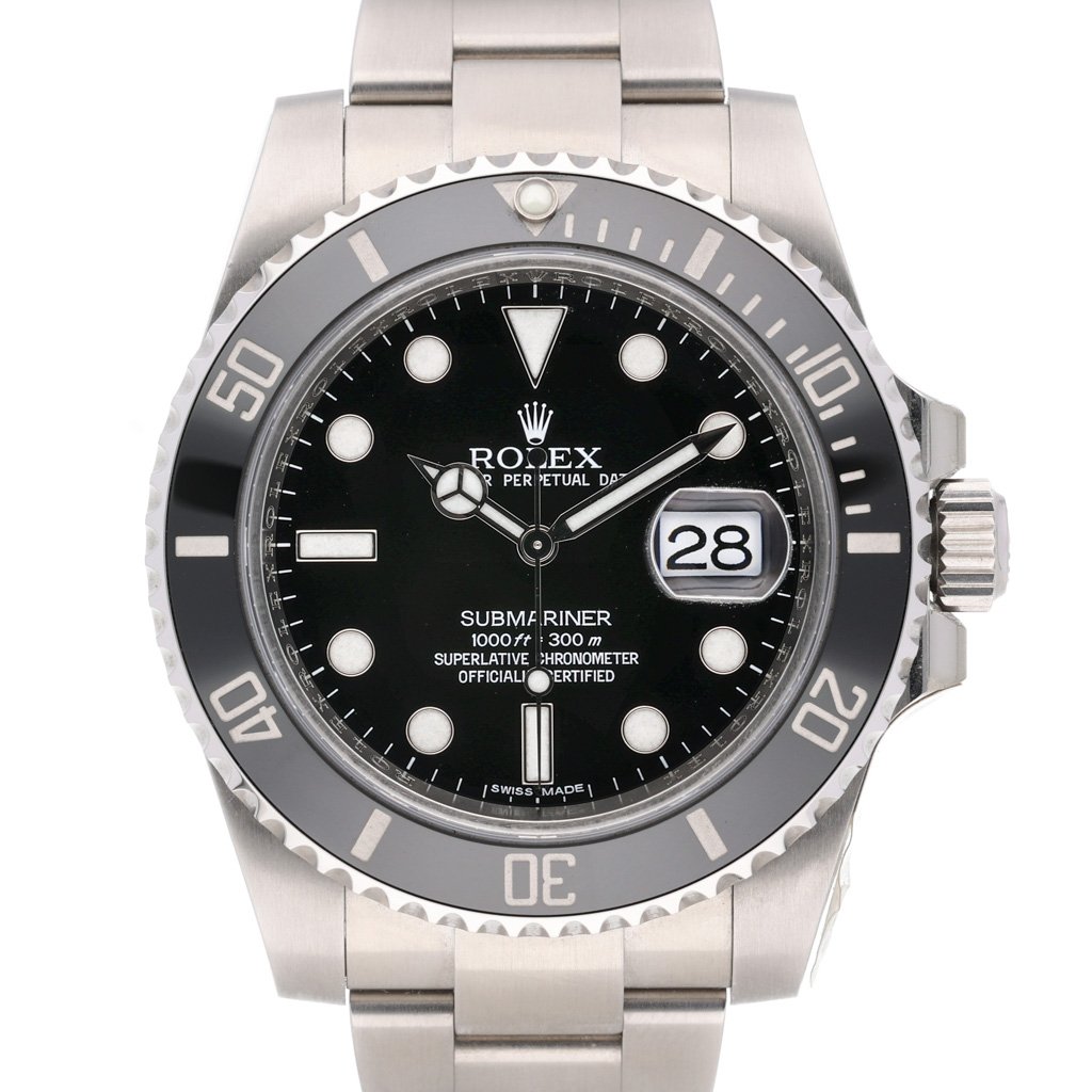 There's no other watch like the Submariner, the peerless tool for divers that has enjoyed an unmatched reputation since its introduction in 1953. The watch is prized for its versatility—sporty and durable enough to be useful for professional diving, possessed of the elegance needed for a black tie event, and with a design so classic it could be worn every day to the office. This stunning version updates the previous reference 16610 with high-tech specs, including the ceramic insert with platinum-coated numerals in the bezel, not to mention the superb calibre 3135 inside.