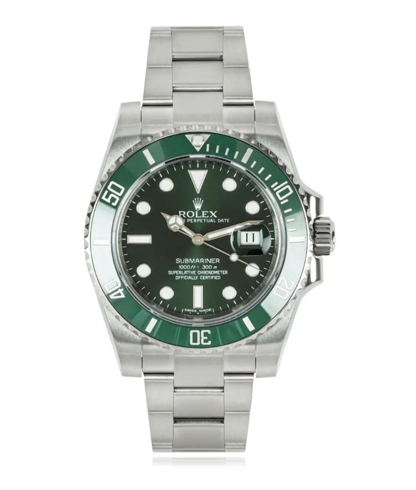 This Rolex Submariner 116610 LV has a green dial and a bracelet strap. This Rolex has undergone a thorough inspection of water resistance, accuracy, functionality and condition to determine the level of reconditioning required to meet our strict standards. It has also been referenced against technical documents and manufacturer records where available to ensure authenticity and a clean history. All our watches have a 24-month warranty for your peace of mind. One of our skilled polishing technicians has removed marks on the case and bracelet of this watch, brought about by daily wear and tear, which is why this watch does not come with the remaining manufacturer’s warranty.