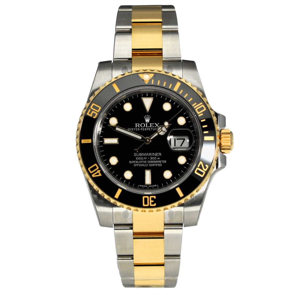 The Submariner is one of the greatest legends in the world of watches. Developed with Jacques-Yves Cousteau in 1953, it quickly became the quintessential diver's watch, a reputation only cemented by appearances in the early Bond films. Today, its timeless design and unbeatable mechanical pedigree continue to make it one of the brand's best-selling pieces, as well as one of the most versatile—equally at home under the sea, in the office or at a black-tie event. This LN (“lunette noir”) model features a striking bezel with a cerachrom insert and numerals coated in gold.