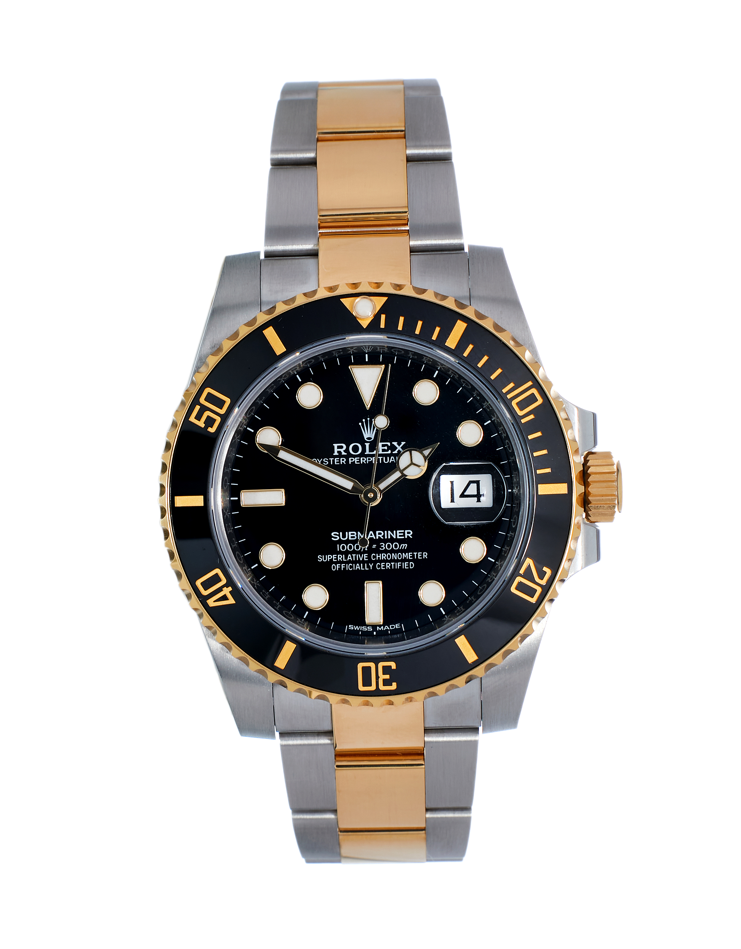 The Submariner is one of the greatest legends in the world of watches. Developed with Jacques-Yves Cousteau in 1953, it quickly became the quintessential diver's watch, a reputation only cemented by appearances in the early Bond films. Today, its timeless design and unbeatable mechanical pedigree continue to make it one of the brand's best-selling pieces, as well as one of the most versatile—equally at home under the sea, in the office or at a black-tie event. This LN (“lunette noir”) model features a striking bezel with a cerachrom insert and numerals coated in gold.