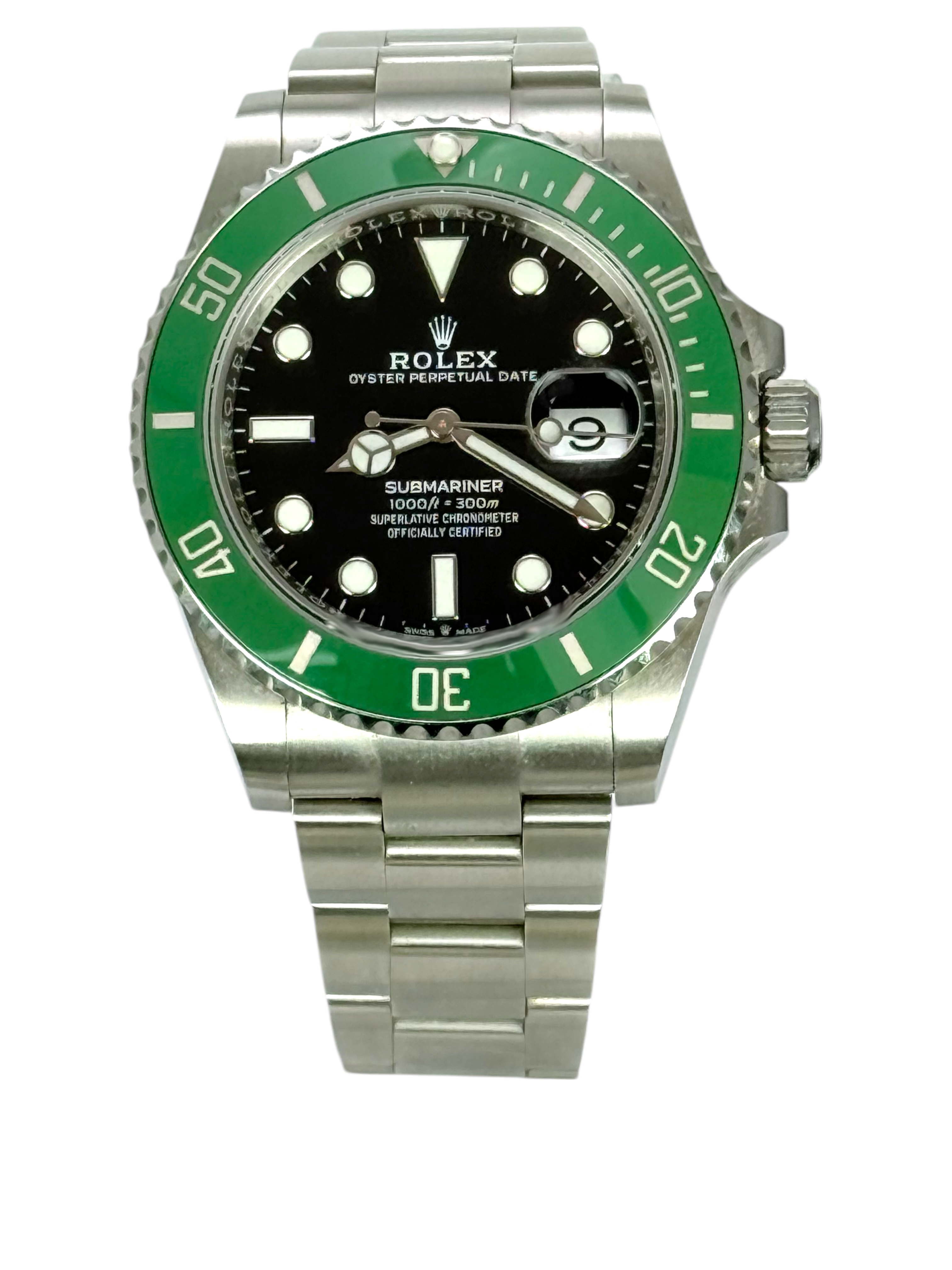 This Rolex Submariner 126610 LV has a black dial and a bracelet strap. This Rolex has undergone a thorough inspection of water resistance, accuracy, functionality and condition to determine the level of reconditioning required to meet our strict standards. It has also been referenced against technical documents and manufacturer records where available to ensure authenticity and a clean history. Our watches have a 24-month warranty for your peace of mind, in conjunction with any remaining manufacturer’s warranty from new or from service. To maintain the manufacturer’s warranty on this watch, it has not been polished in our service centre.