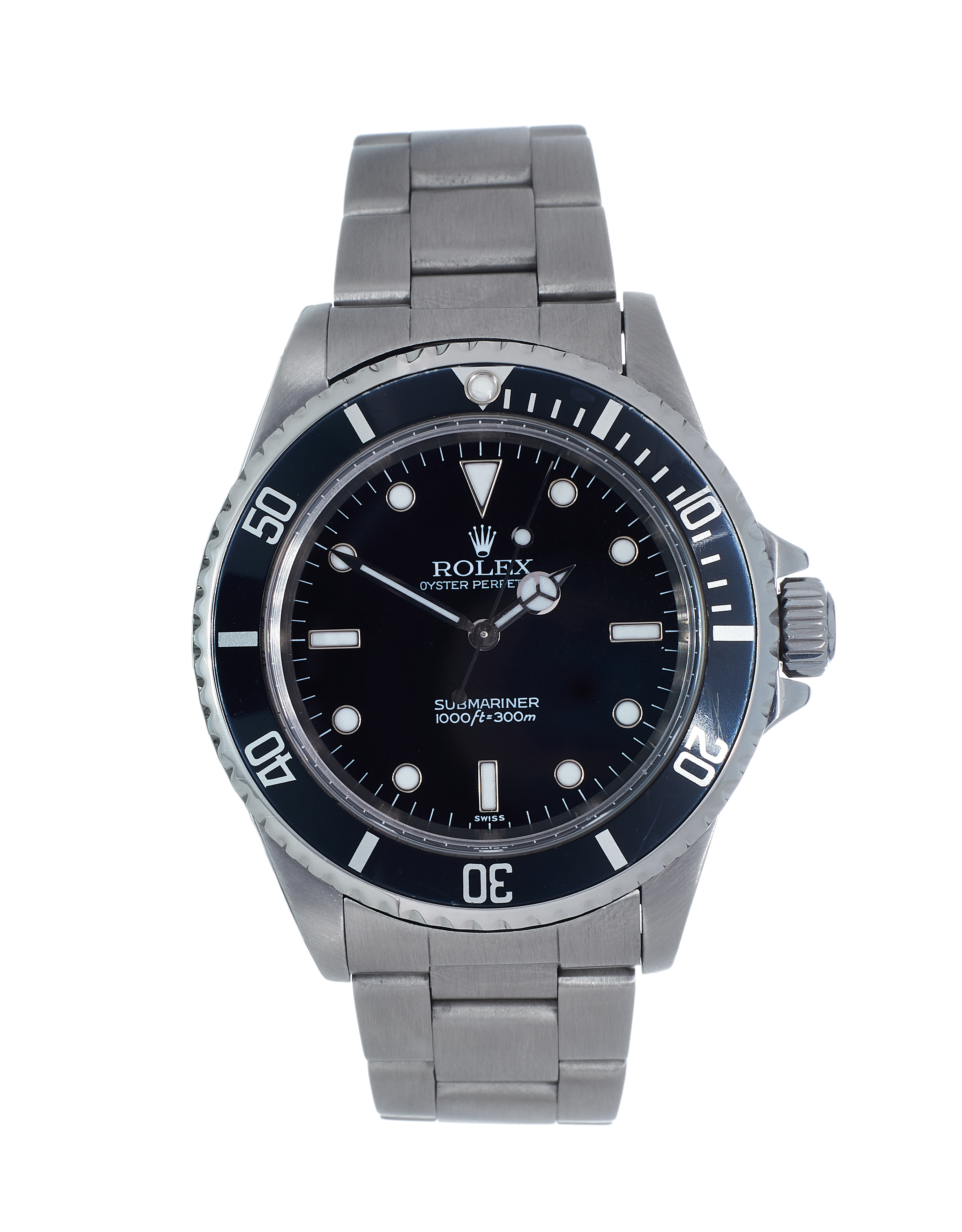 This Rolex Submariner 14060 has a black dial and a bracelet strap. This Rolex has undergone a thorough inspection of water resistance, accuracy, functionality and condition to determine the level of reconditioning required to meet our strict standards. It has also been referenced against technical documents and manufacturer records where available to ensure authenticity and a clean history. All our watches have a 24-month warranty for your peace of mind. One of our skilled polishing technicians has removed marks on the case and bracelet of this watch, brought about by daily wear and tear, which is why this watch does not come with the remaining manufacturer’s warranty.