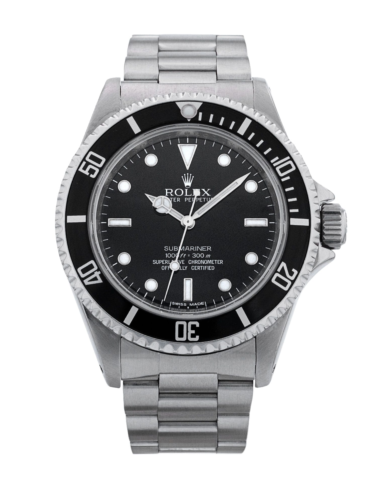 This Rolex Submariner 14060M has a black dial and a bracelet strap. This Rolex has undergone a thorough inspection of water resistance, accuracy, functionality and condition to determine the level of reconditioning required to meet our strict standards. It has also been referenced against technical documents and manufacturer records where available to ensure authenticity and a clean history. All our watches have a 24-month warranty for your peace of mind. One of our skilled polishing technicians has removed marks on the case and bracelet of this watch, brought about by daily wear and tear, which is why this watch does not come with the remaining manufacturer’s warranty.