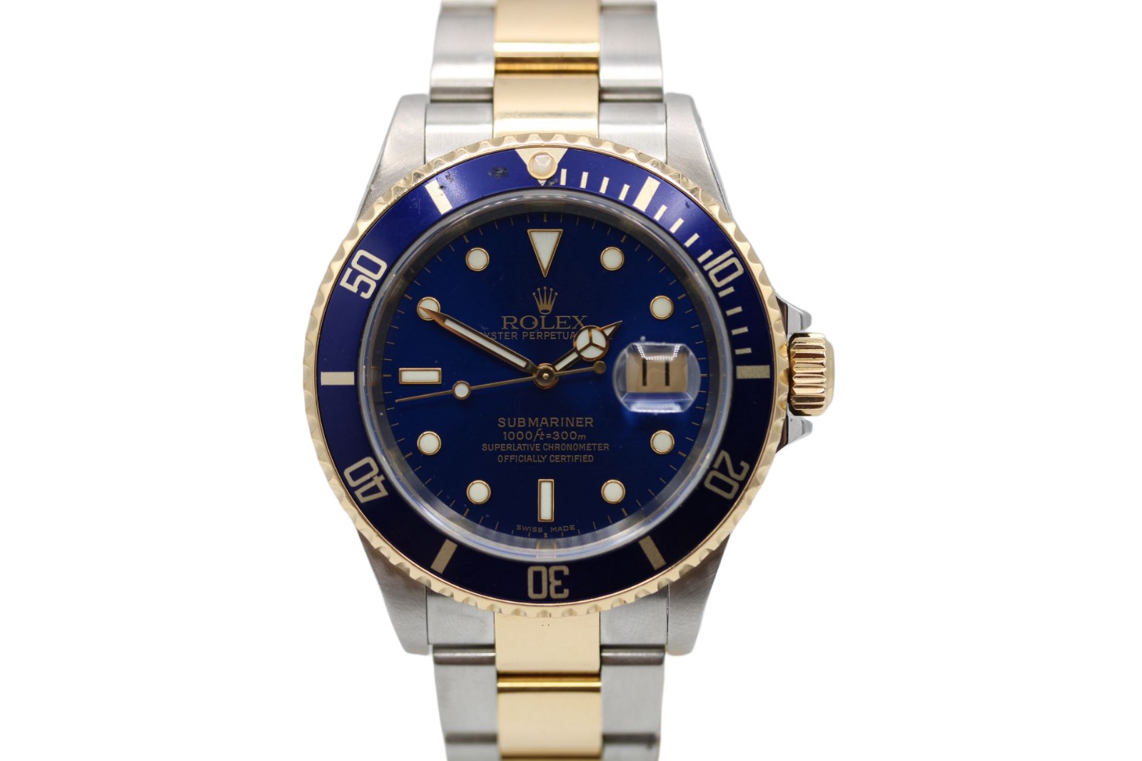 This Rolex Submariner 16613 has a blue dial and a bracelet strap. This Rolex has undergone a thorough inspection of water resistance, accuracy, functionality and condition to determine the level of reconditioning required to meet our strict standards. It has also been referenced against technical documents and manufacturer records where available to ensure authenticity and a clean history. All our watches have a 24-month warranty for your peace of mind. One of our skilled polishing technicians has removed marks on the case and bracelet of this watch, brought about by daily wear and tear, which is why this watch does not come with the remaining manufacturer’s warranty.