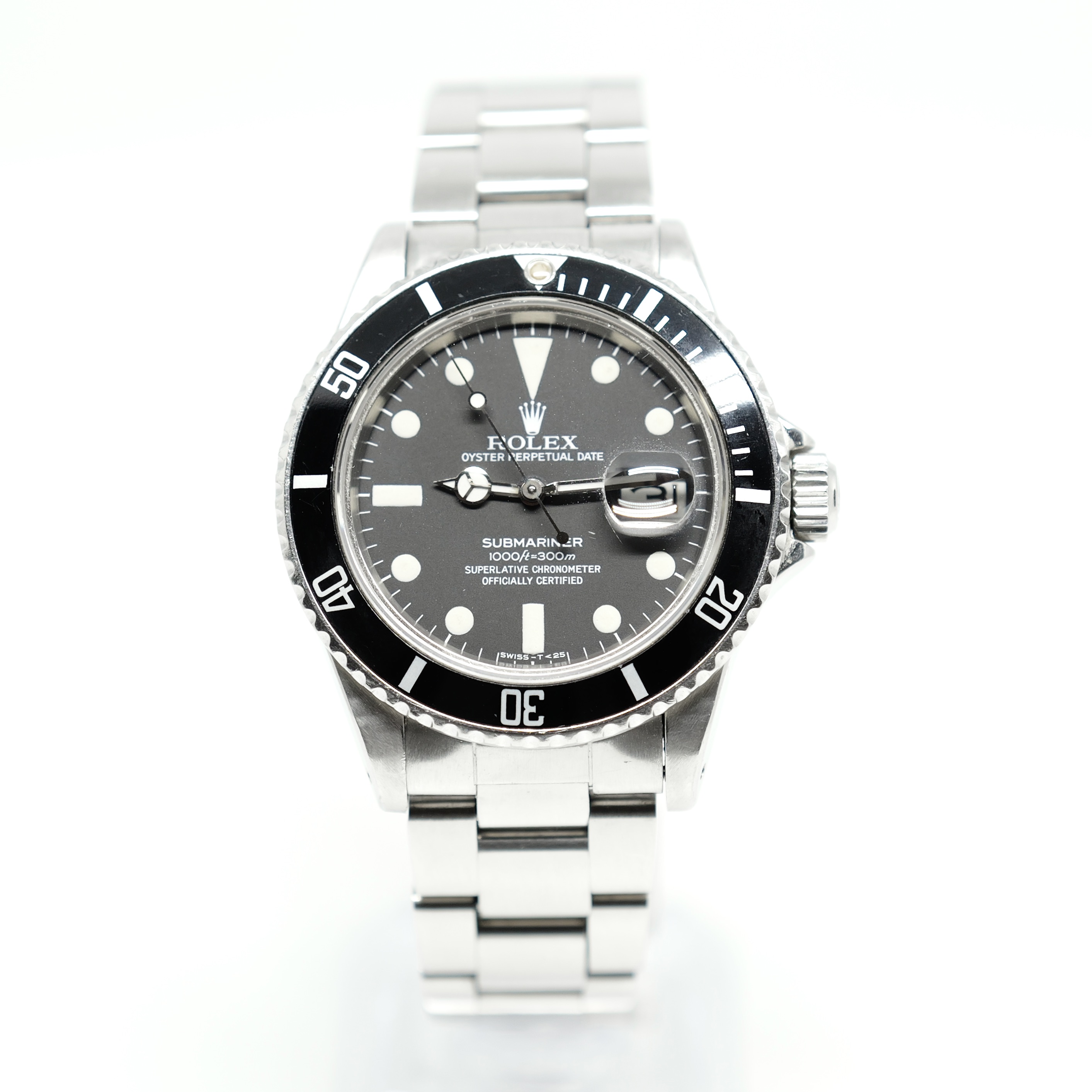 This Rolex Submariner 16800 has a black dial and a bracelet strap. This Rolex has undergone a thorough inspection of water resistance, accuracy, functionality and condition to determine the level of reconditioning required to meet our strict standards. It has also been referenced against technical documents and manufacturer records where available to ensure authenticity and a clean history. All our watches have a 24-month warranty for your peace of mind. One of our skilled polishing technicians has removed marks on the case and bracelet of this watch, brought about by daily wear and tear, which is why this watch does not come with the remaining manufacturer’s warranty.