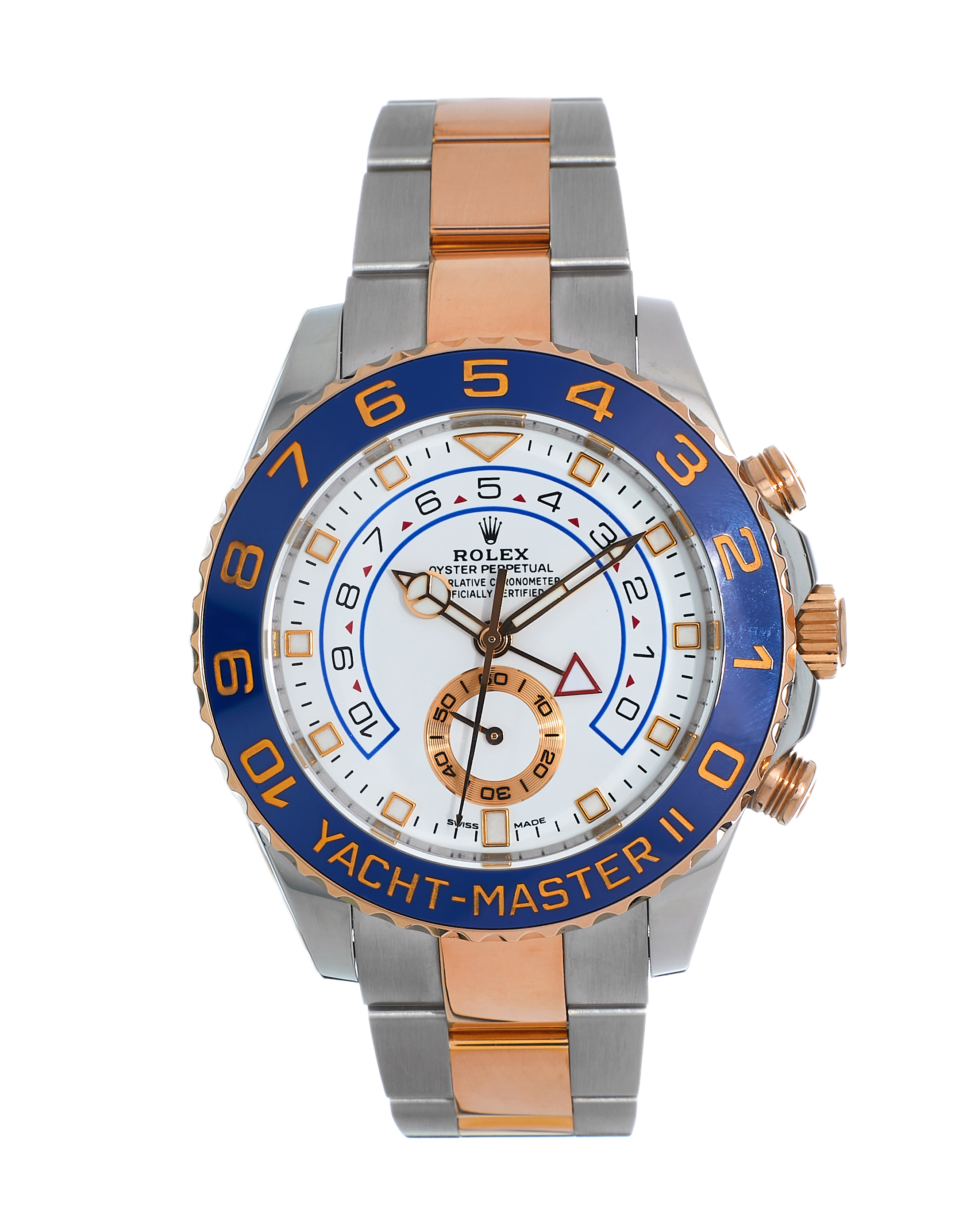 This Rolex Yacht-Master II 116681 has a white dial and a bracelet strap. This Rolex has undergone a thorough inspection of water resistance, accuracy, functionality and condition to determine the level of reconditioning required to meet our strict standards. It has also been referenced against technical documents and manufacturer records where available to ensure authenticity and a clean history. All our watches have a 24-month warranty for your peace of mind. One of our skilled polishing technicians has removed marks on the case and bracelet of this watch, brought about by daily wear and tear, which is why this watch does not come with the remaining manufacturer’s warranty.