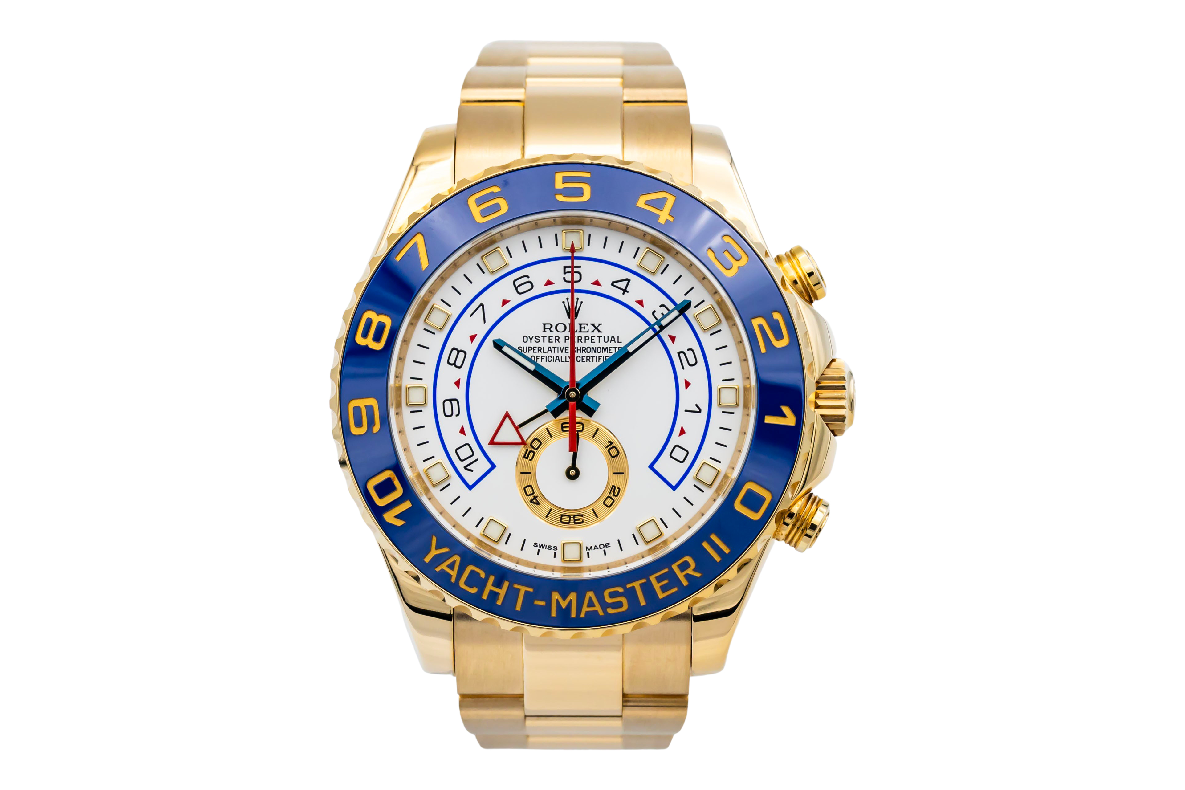 This Rolex Yacht-Master II 116688 has a white dial and a bracelet strap. This Rolex has undergone a thorough inspection of water resistance, accuracy, functionality and condition to determine the level of reconditioning required to meet our strict standards. It has also been referenced against technical documents and manufacturer records where available to ensure authenticity and a clean history. All our watches have a 24-month warranty for your peace of mind. One of our skilled polishing technicians has removed marks on the case and bracelet of this watch, brought about by daily wear and tear, which is why this watch does not come with the remaining manufacturer’s warranty.