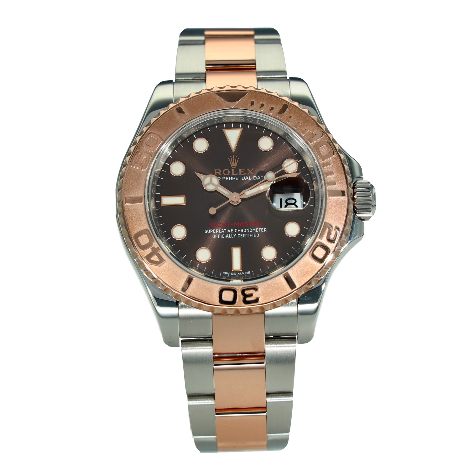 This Rolex Yacht-Master 116621 has a chocolate dial and a bracelet strap. This Rolex has undergone a thorough inspection of water resistance, accuracy, functionality and condition to determine the level of reconditioning required to meet our strict standards. It has also been referenced against technical documents and manufacturer records where available to ensure authenticity and a clean history. All our watches have a 24-month warranty for your peace of mind. One of our skilled polishing technicians has removed marks on the case and bracelet of this watch, brought about by daily wear and tear, which is why this watch does not come with the remaining manufacturer’s warranty.