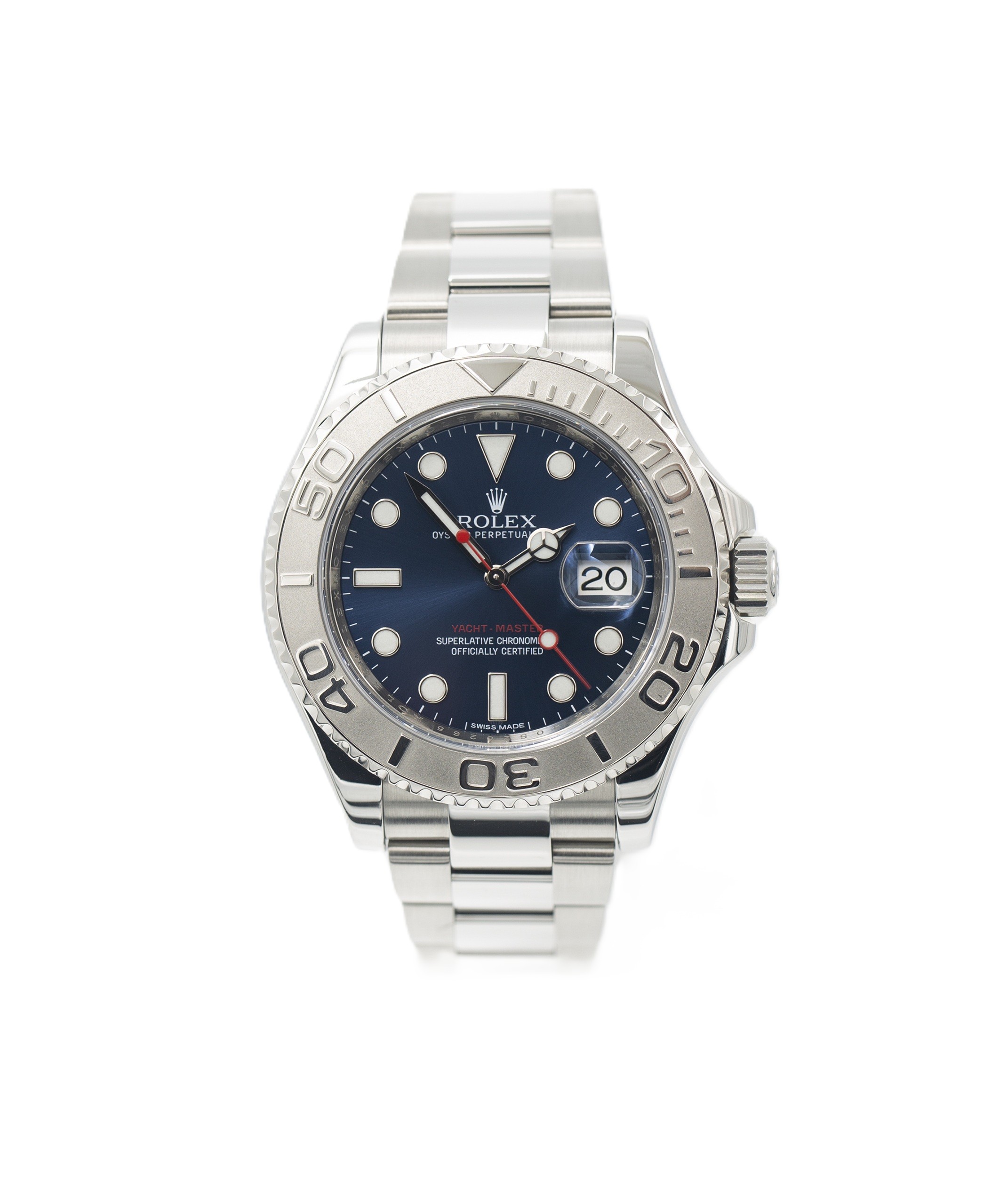 This Rolex Yacht-Master 116622 has a blue dial and a bracelet strap. This Rolex has undergone a thorough inspection of water resistance, accuracy, functionality and condition to determine the level of reconditioning required to meet our strict standards. It has also been referenced against technical documents and manufacturer records where available to ensure authenticity and a clean history. All our watches have a 24-month warranty for your peace of mind. One of our skilled polishing technicians has removed marks on the case and bracelet of this watch, brought about by daily wear and tear, which is why this watch does not come with the remaining manufacturer’s warranty.