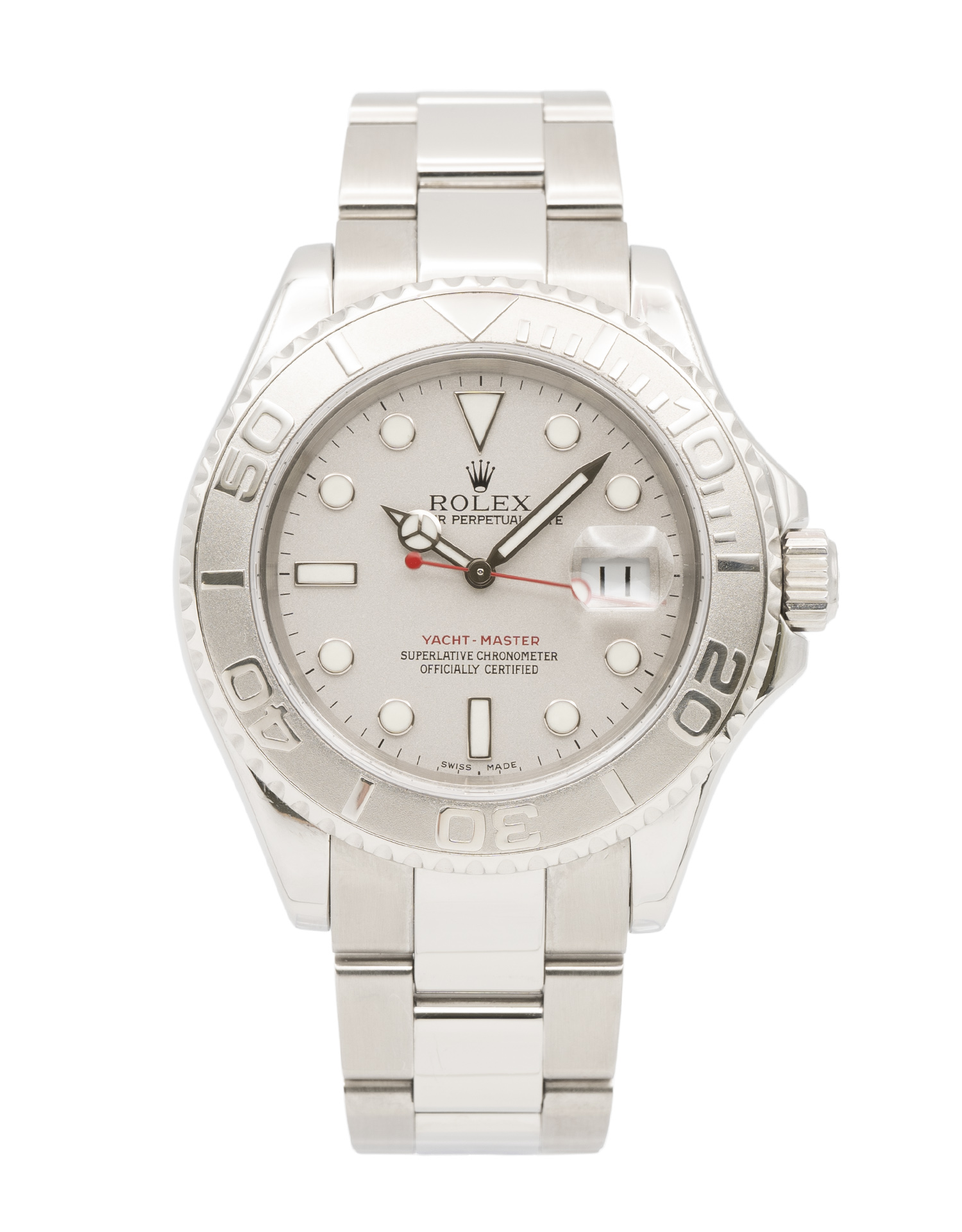 This Rolex Yacht-Master 116622 has a platinum dial and a bracelet strap. This Rolex has undergone a thorough inspection of water resistance, accuracy, functionality and condition to determine the level of reconditioning required to meet our strict standards. It has also been referenced against technical documents and manufacturer records where available to ensure authenticity and a clean history. All our watches have a 24-month warranty for your peace of mind. One of our skilled polishing technicians has removed marks on the case and bracelet of this watch, brought about by daily wear and tear, which is why this watch does not come with the remaining manufacturer’s warranty.