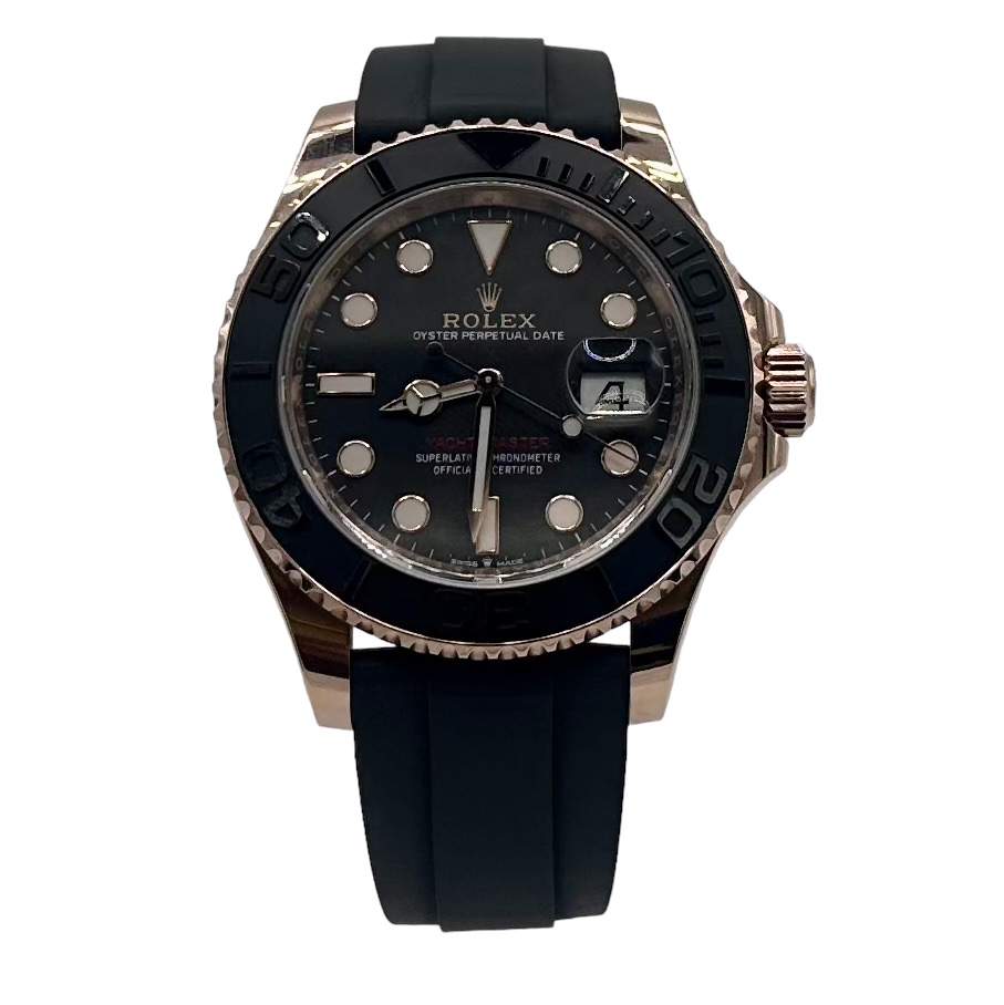 This Rolex Yacht-Master 116655 has a black dial and a rubber strap. This Rolex has undergone a thorough inspection of water resistance, accuracy, functionality and condition to determine the level of reconditioning required to meet our strict standards. It has also been referenced against technical documents and manufacturer records where available to ensure authenticity and a clean history. Our watches have a 24-month warranty for your peace of mind, in conjunction with any remaining manufacturer’s warranty from new or from service. To maintain the manufacturer’s warranty on this watch, it has not been polished in our service centre.