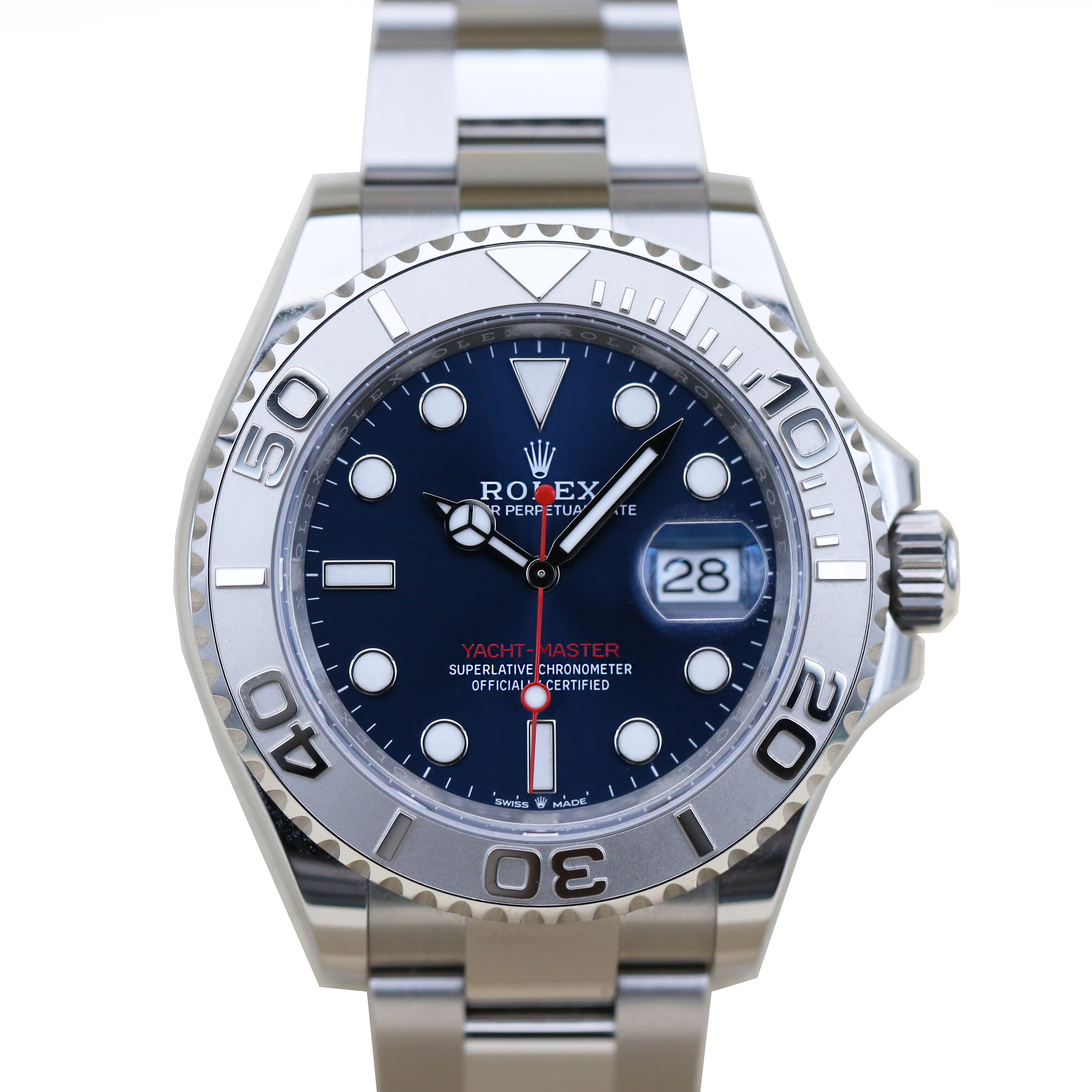 This Rolex Yacht-Master 126622 has a blue dial and a bracelet strap. This Rolex has undergone a thorough inspection of water resistance, accuracy, functionality and condition to determine the level of reconditioning required to meet our strict standards. It has also been referenced against technical documents and manufacturer records where available to ensure authenticity and a clean history. Our watches have a 24-month warranty for your peace of mind, in conjunction with any remaining manufacturer’s warranty from new or from service. To maintain the manufacturer’s warranty on this watch, it has not been polished in our service centre.