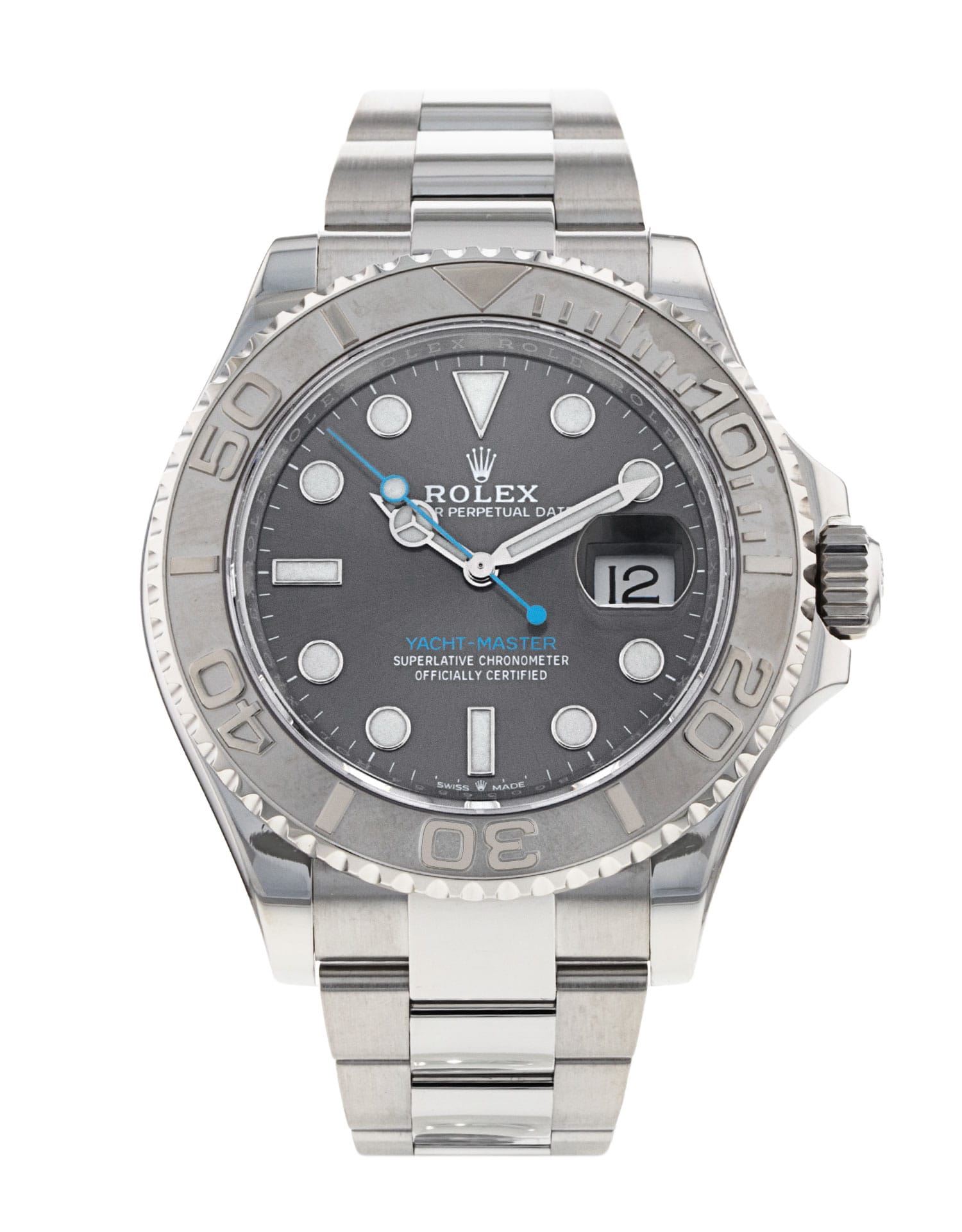 This Rolex Yacht-Master 126622 has a slate dial and a bracelet strap. This Rolex has undergone a thorough inspection of water resistance, accuracy, functionality and condition to determine the level of reconditioning required to meet our strict standards. It has also been referenced against technical documents and manufacturer records where available to ensure authenticity and a clean history. All our watches have a 24-month warranty for your peace of mind. One of our skilled polishing technicians has removed marks on the case and bracelet of this watch, brought about by daily wear and tear, which is why this watch does not come with the remaining manufacturer’s warranty.