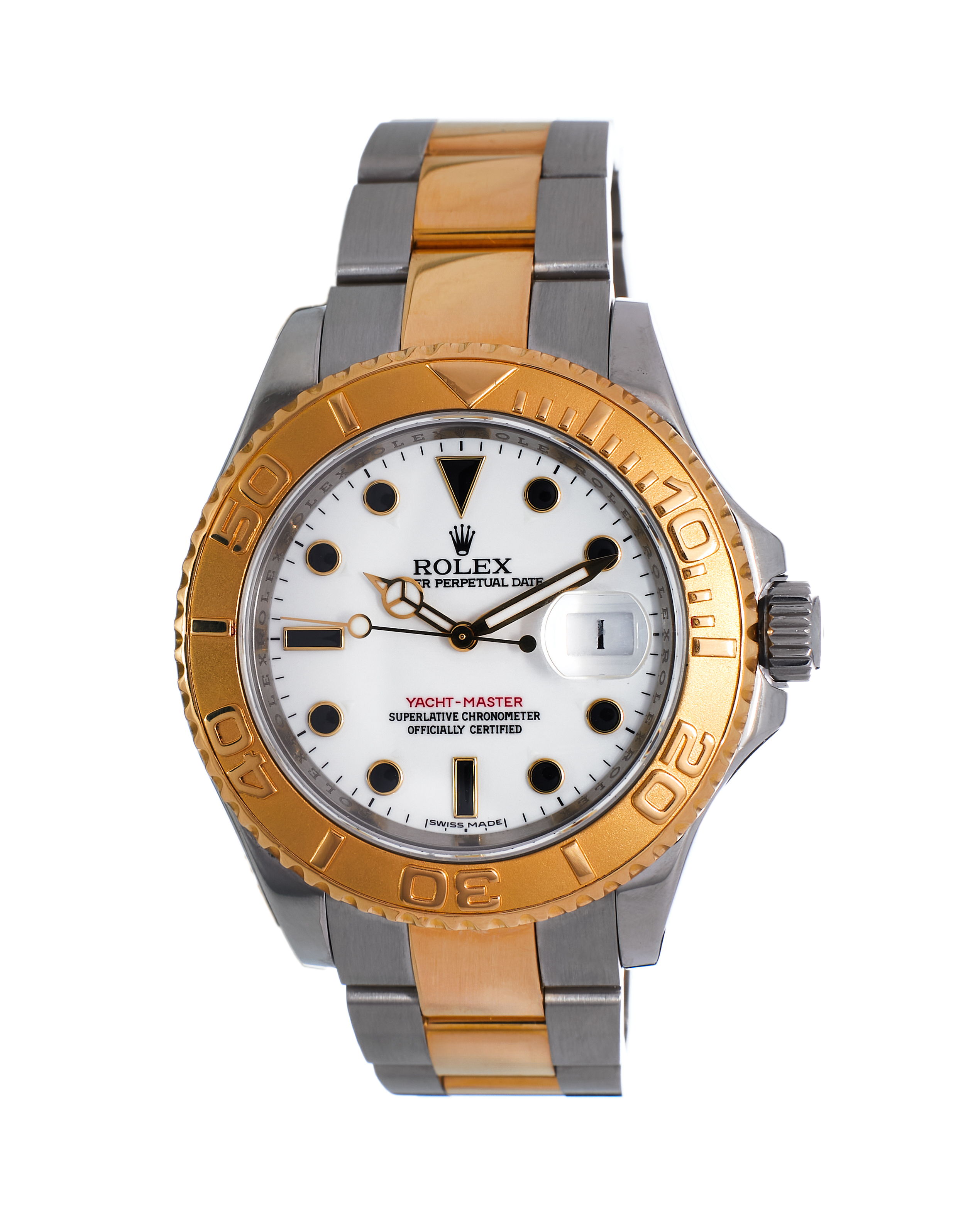 The Yacht-Master, introduced by Rolex in 1992 in a gold case, was the first all-new watch from the brand since the Daytona in the 1960s. The watch was designed for adventurers and sportsmen—the topside equivalent to the diver's Submariner, to which it bears a strong similarity, though with more of a luxury than a tool watch feel. By 1999 it had become one of the most highly sought and desirable models in the Rolex stable after the introduction of a platinum version, though it wasn't until 2005 that the Rolesor reference 16623 arrived. Rolesor is the brand's term for two-tone watches that use both steel and gold, which this one does so in serious style. Like all Yacht-Masters, the bezel is made of a single block of solid gold.