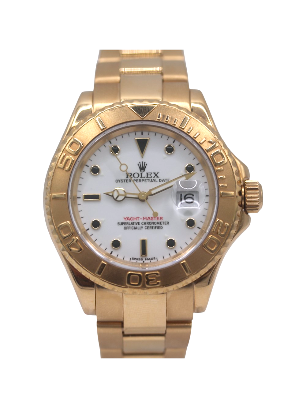This Rolex Yacht-Master 16628 has a white dial and a bracelet strap. This Rolex has undergone a thorough inspection of water resistance, accuracy, functionality and condition to determine the level of reconditioning required to meet our strict standards. It has also been referenced against technical documents and manufacturer records where available to ensure authenticity and a clean history. All our watches have a 24-month warranty for your peace of mind. One of our skilled polishing technicians has removed marks on the case and bracelet of this watch, brought about by daily wear and tear, which is why this watch does not come with the remaining manufacturer’s warranty.