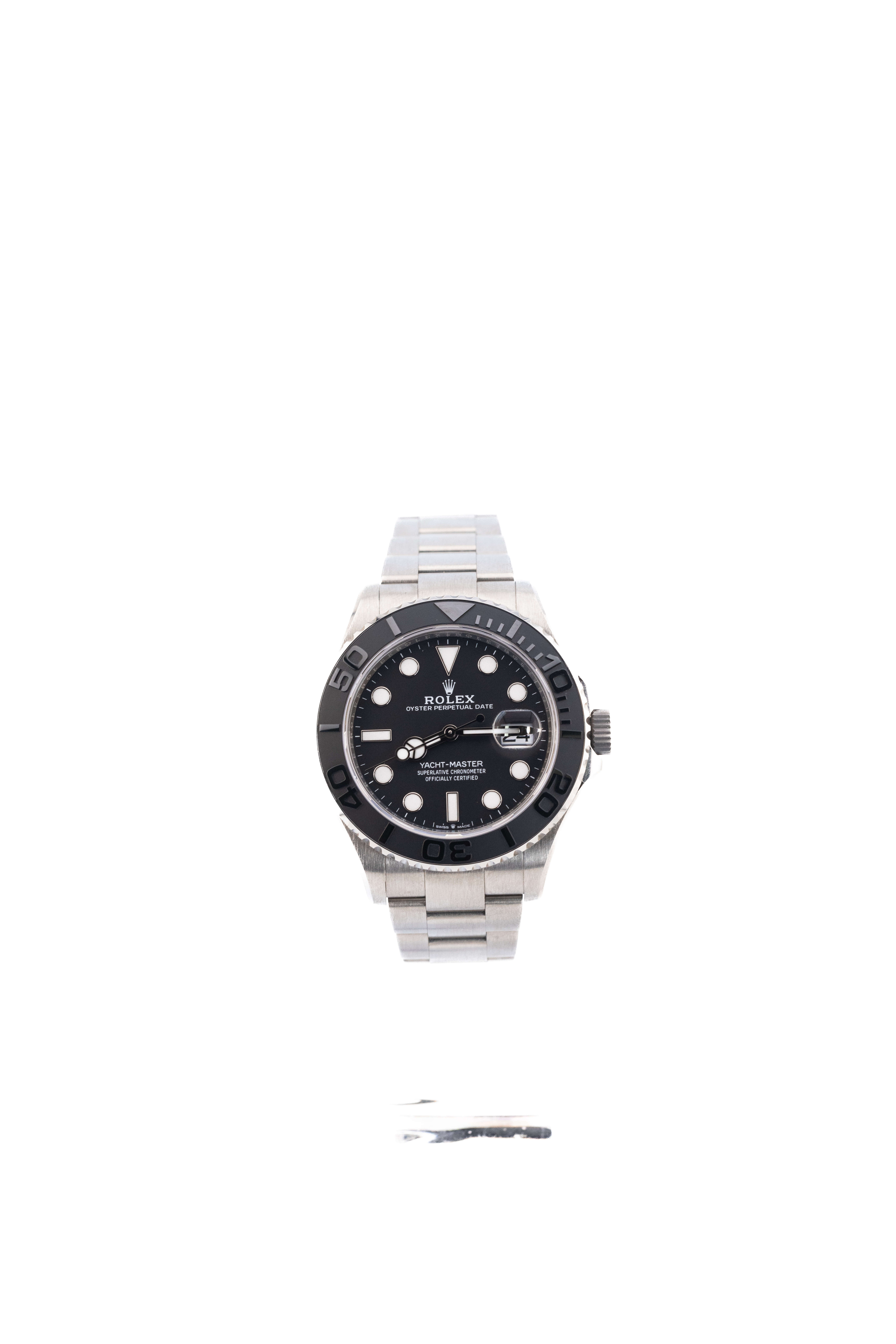 This Rolex Yacht-Master 226627 has a black dial and a bracelet strap. This Rolex has undergone a thorough inspection of water resistance, accuracy, functionality and condition to determine the level of reconditioning required to meet our strict standards. It has also been referenced against technical documents and manufacturer records where available to ensure authenticity and a clean history. All our watches have a 24-month warranty for your peace of mind. One of our skilled polishing technicians has removed marks on the case and bracelet of this watch, brought about by daily wear and tear, which is why this watch does not come with the remaining manufacturer’s warranty.