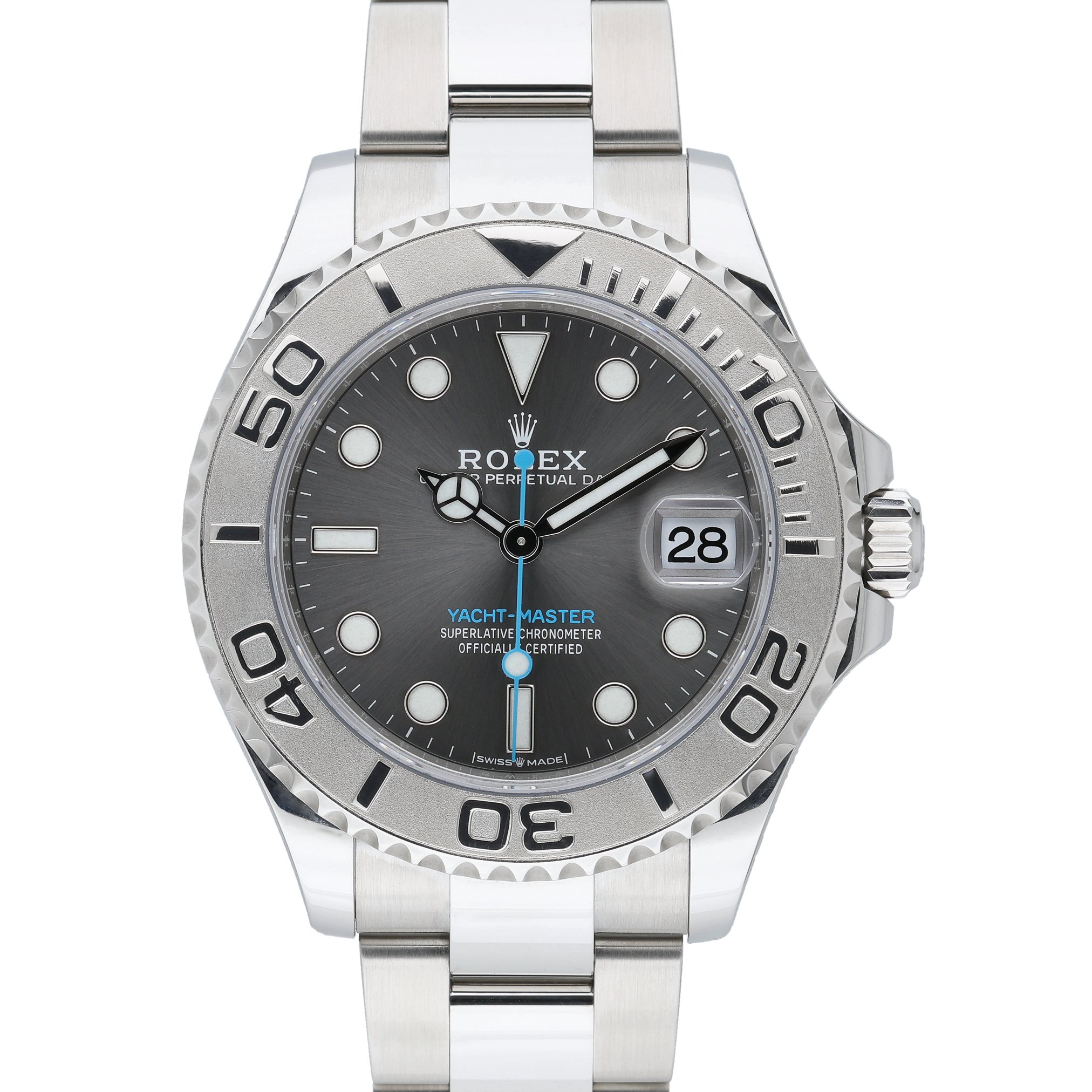 This Rolex Yacht-Master 268622 has a slate dial and a bracelet strap. This Rolex has undergone a thorough inspection of water resistance, accuracy, functionality and condition to determine the level of reconditioning required to meet our strict standards. It has also been referenced against technical documents and manufacturer records where available to ensure authenticity and a clean history. Our watches have a 24-month warranty for your peace of mind, in conjunction with any remaining manufacturer’s warranty from new or from service. To maintain the manufacturer’s warranty on this watch, it has not been polished in our service centre.