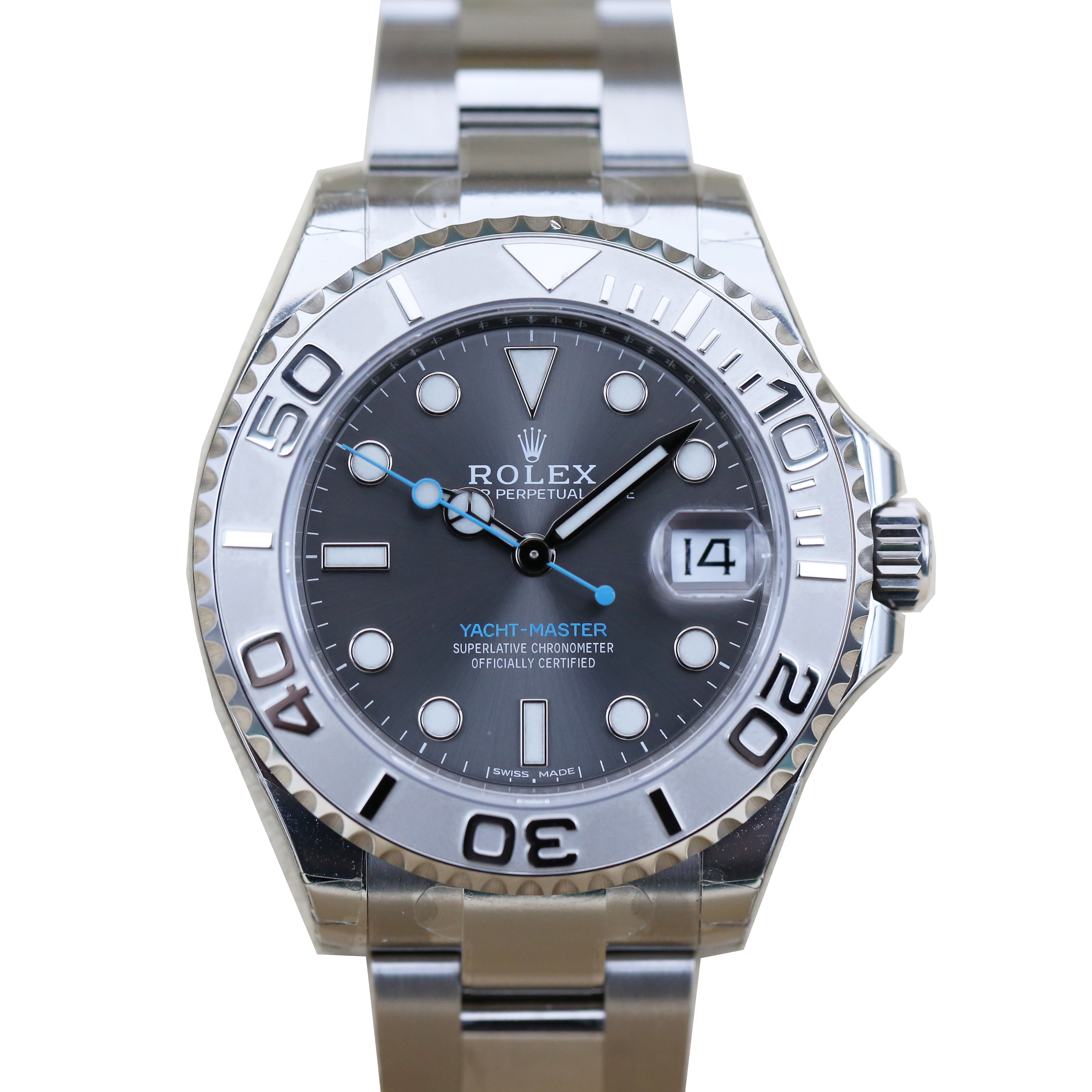 This Rolex Yacht-Master 268622 has a slate dial and a bracelet strap. This Rolex has undergone a thorough inspection of water resistance, accuracy, functionality and condition to determine the level of reconditioning required to meet our strict standards. It has also been referenced against technical documents and manufacturer records where available to ensure authenticity and a clean history. All our watches have a 24-month warranty for your peace of mind. One of our skilled polishing technicians has removed marks on the case and bracelet of this watch, brought about by daily wear and tear, which is why this watch does not come with the remaining manufacturer’s warranty.