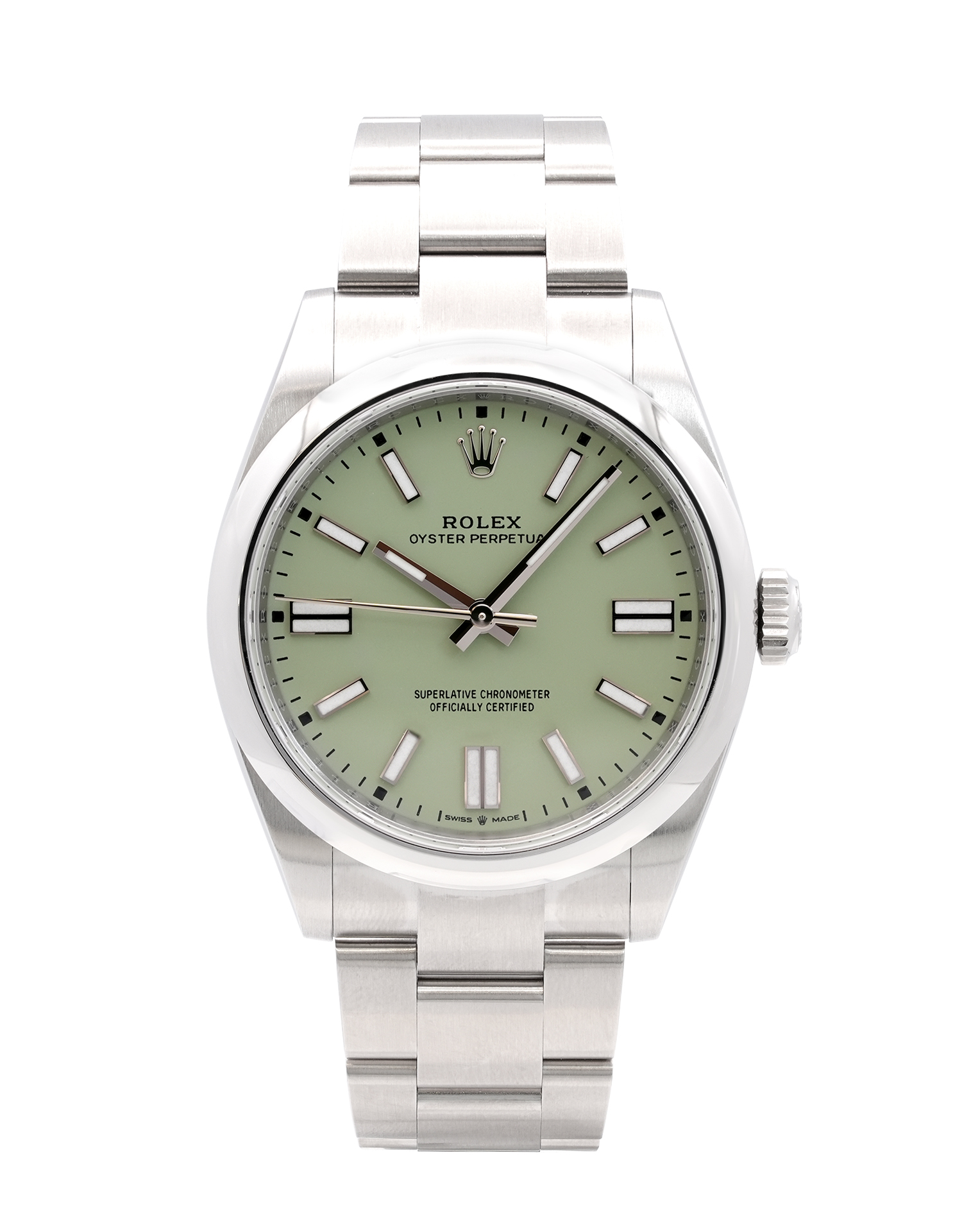 This Rolex Oyster Perpetual 41 134300 has a green dial and a bracelet strap. This Rolex has undergone a thorough inspection of water resistance, accuracy, functionality and condition to determine the level of reconditioning required to meet our strict standards. It has also been referenced against technical documents and manufacturer records where available to ensure authenticity and a clean history. Our watches have a 24-month warranty for your peace of mind, in conjunction with any remaining manufacturer’s warranty from new or from service. To maintain the manufacturer’s warranty on this watch, it has not been polished in our service centre.