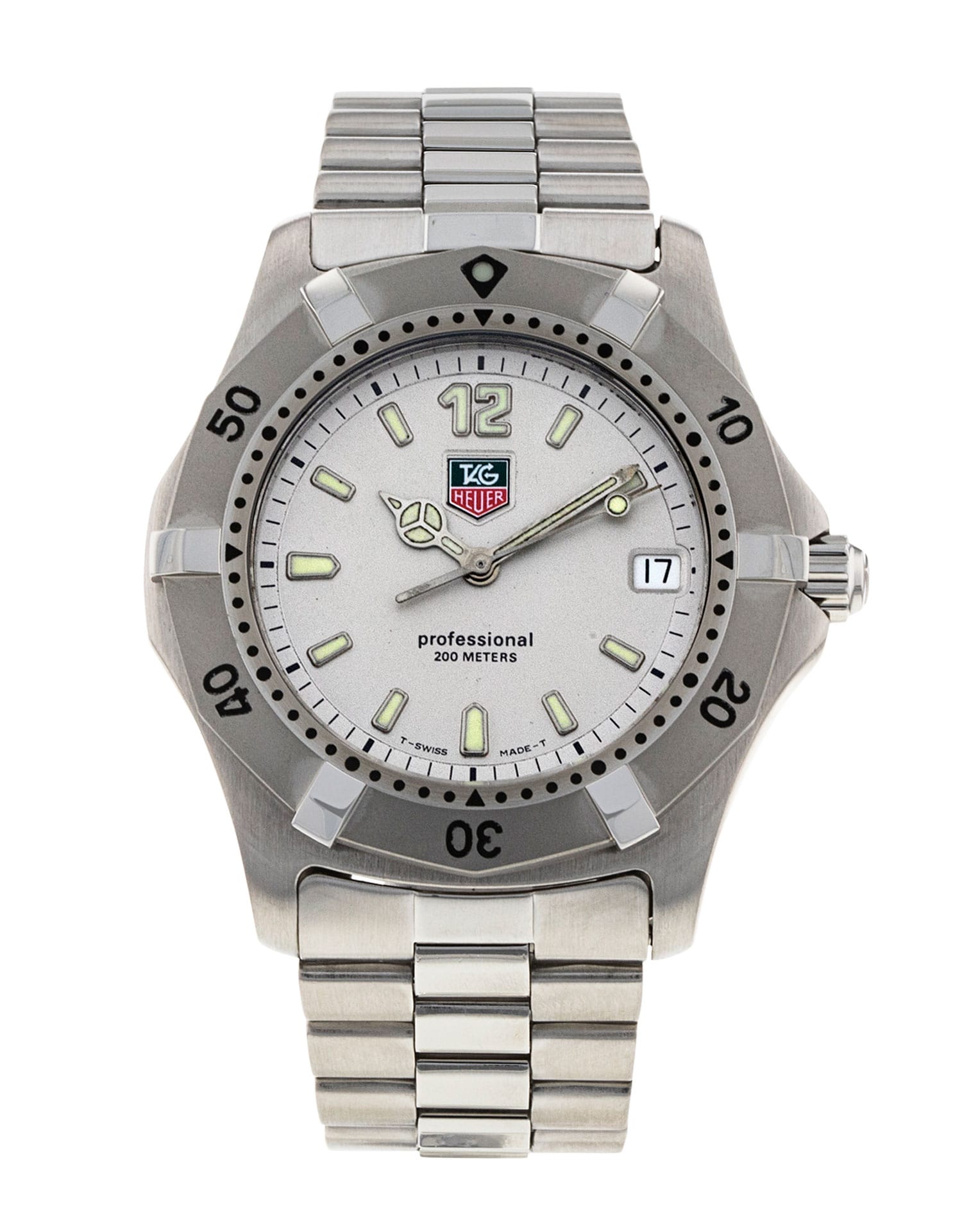 This Tag Heuer 2000 Series WK1112.BA0311 has a silver baton dial and a bracelet strap. This Tag Heuer has undergone a thorough inspection of accuracy, functionality and condition at our Tag Heuer certified service centre to determine the level of reconditioning required to meet our strict standards. It has also been checked against our records to ensure authenticity. All our watches have a 24-month warranty for your peace of mind.