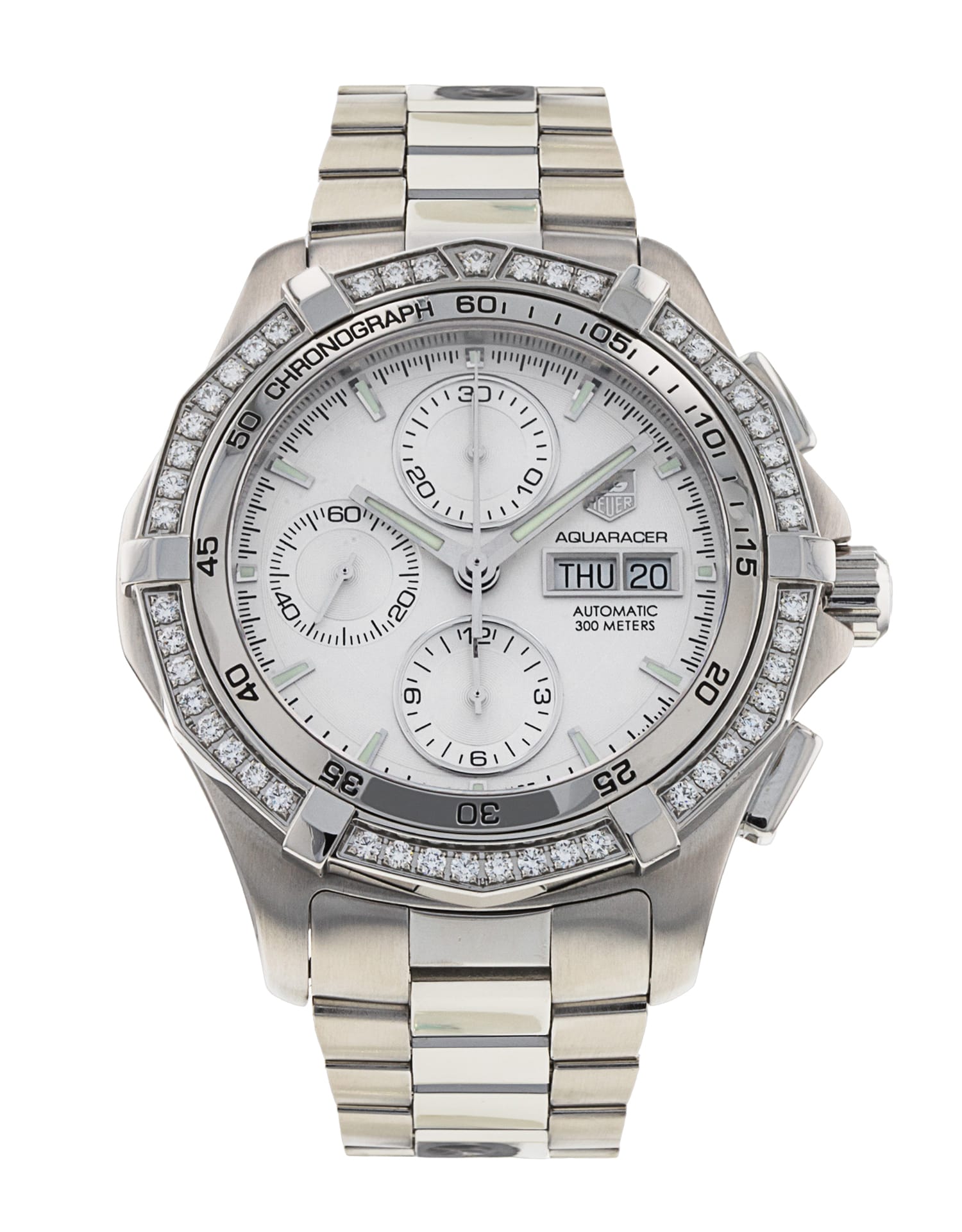 This Tag Heuer Aquaracer CAF2015.BA0815 has a silver baton dial and a bracelet strap. This Tag Heuer has undergone a thorough inspection of accuracy, functionality and condition at our Tag Heuer certified service centre to determine the level of reconditioning required to meet our strict standards. It has also been checked against our records to ensure authenticity. All our watches have a 24-month warranty for your peace of mind.
